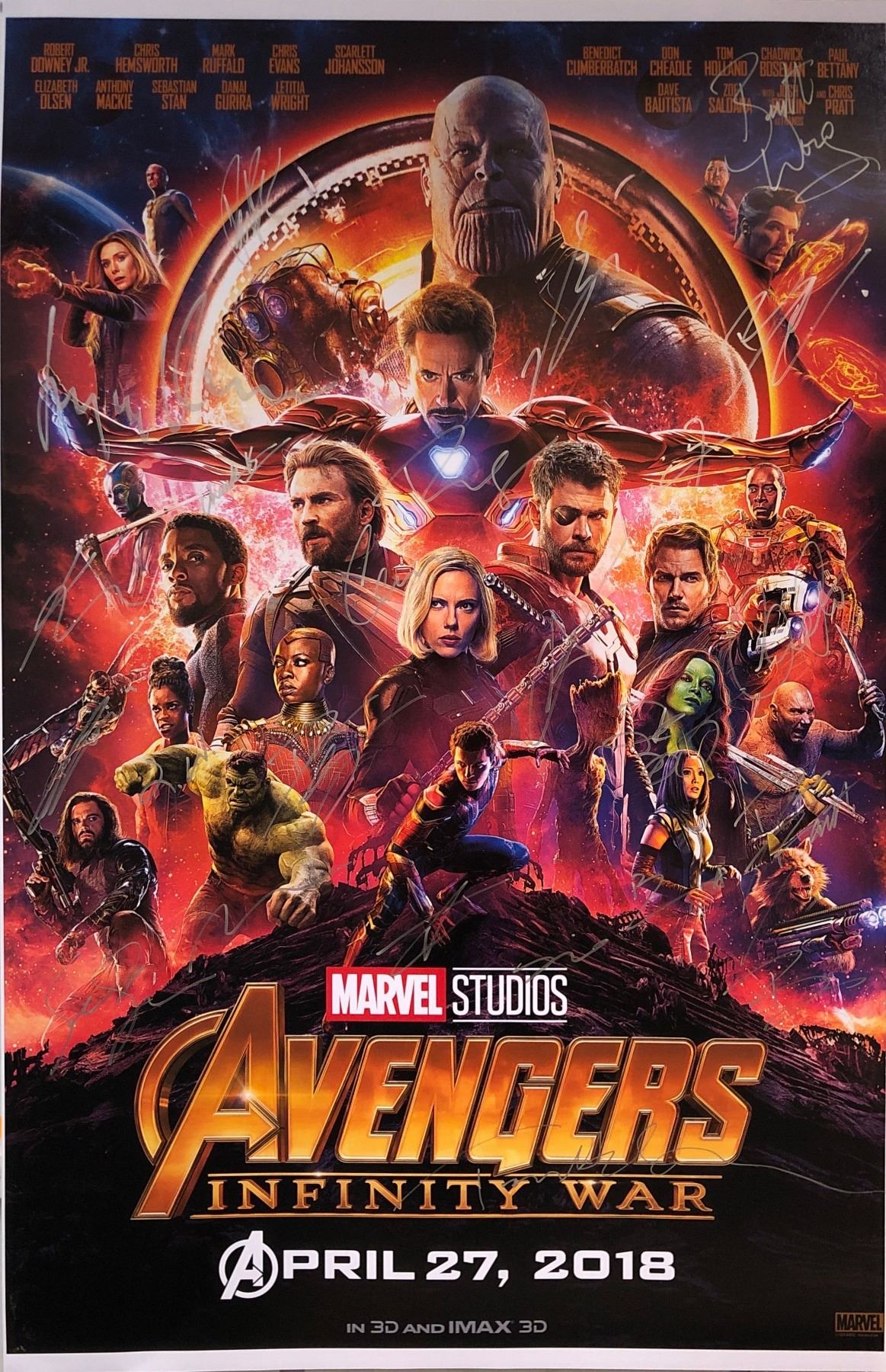 Robert Downey Jr., Chadwick Boseman, Chris Hemsworth, Elizabeth Olsen, Sebastian Stan, Karen Gillan, Scarlett Johansson, Tom Hiddleston, Benedict Cumberbatch, Tom Holland, Chris Pratt, Zoe Saldana, Josh Brolin, Vin Diesel, Dave Bautista, Bradley Cooper, Paul Bettany, Mark Ruffalo, Don Cheadle, Anthony Mackie, Danai Gurira, Letitia Wright, Pom Klementieff, Benedict Wong
