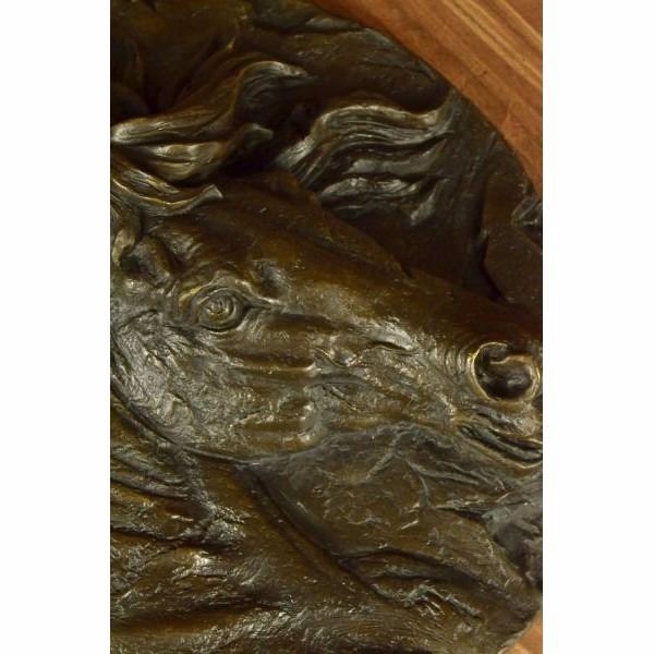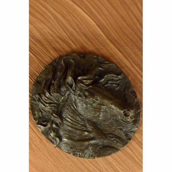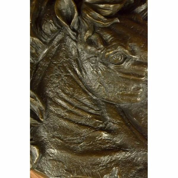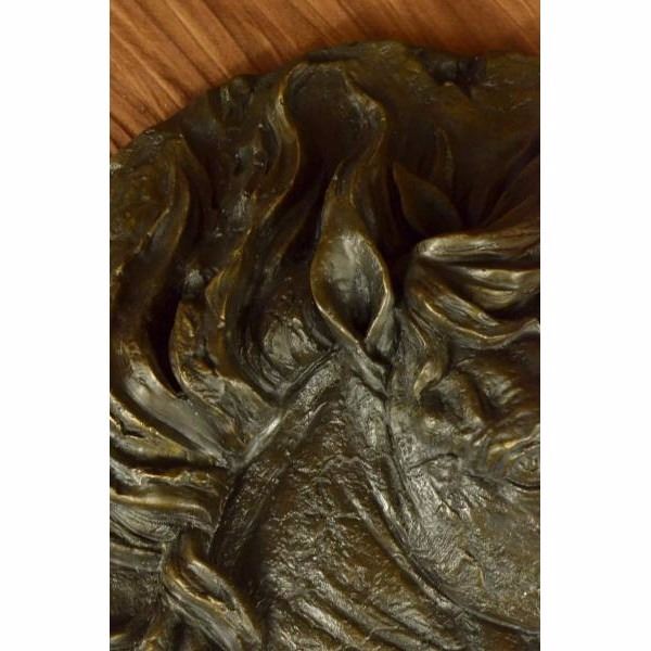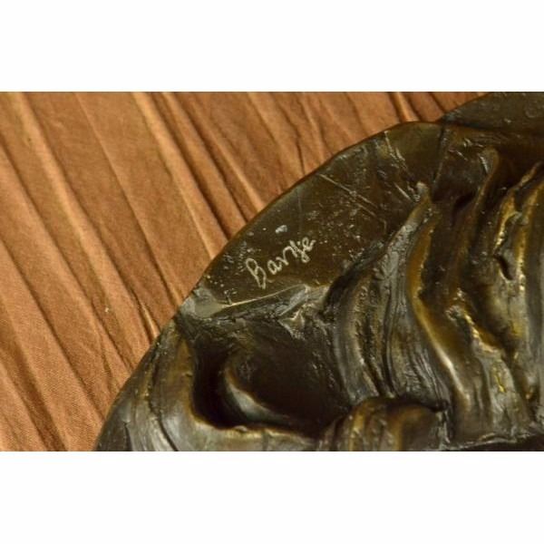 This incredibly detailed wall piece will be the focus or wonderful addition to any country style area. The horse's defining features shine in this sculpture: a thick mane, prominent mouth and nose, and bulging eyes. The sculpture is reminiscent of the precious image of a horse sticking its head out of the barn door waiting to be touched. This piece was crafted using the lost wax method. It is signedBarye. Condition: This sculpture is in perfect condition. Bronze Dimensions :Height 16" x Width 16" Weight : 14LBS Inventory: 32Y10438123