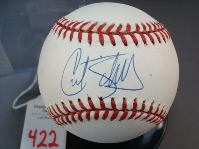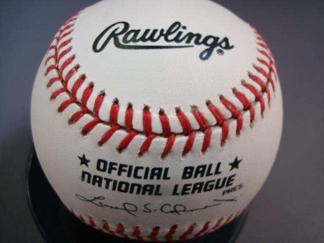 Signed Baseball CURT SCHILLING with Plastic Case: Official National League Baseball Signed by Curt Schilling. Pitched Boston Red Sox to their First World Series Win and Broke the "Curse" (40-80)