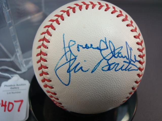 Signed Baseball HORACE CLARK & JIM BOUTON Yankee Greats. Signed at Old Timers Day at Old Yankee Stadium (50-100)