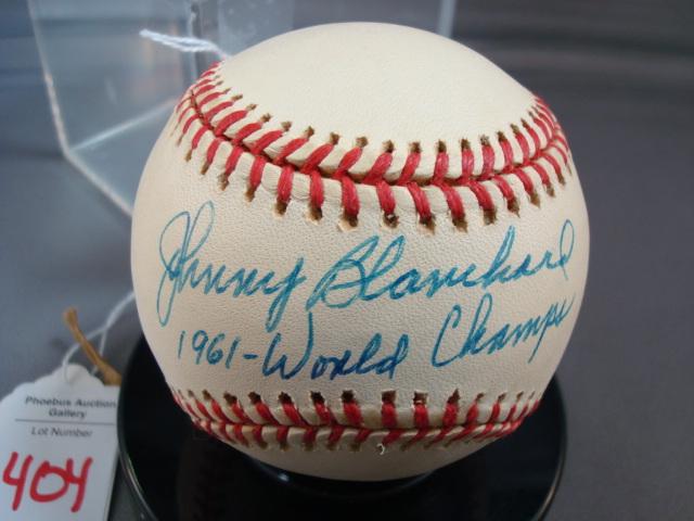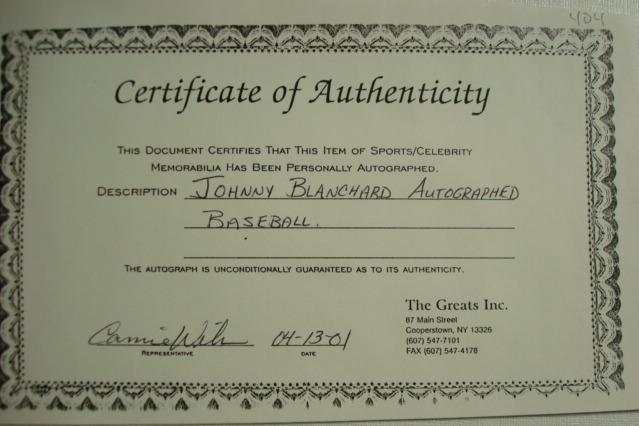 Signed Baseball JOHNNY BLANCHARD With CA: American League Baseball Signed by Yankee Superstar Johnny BLANCHARD with Certificate of Authenticity from The Greats Inc. Cooperstown NY. With Plastic Case. (25-50)