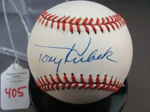 Signed Baseball TONY KUBECK: American League Baseball Signed by Yankee Superstar TONY KUBECK from MICKEY'S PLACE, COOPERSTOWN, NY. With Plastic Case. (100-200)