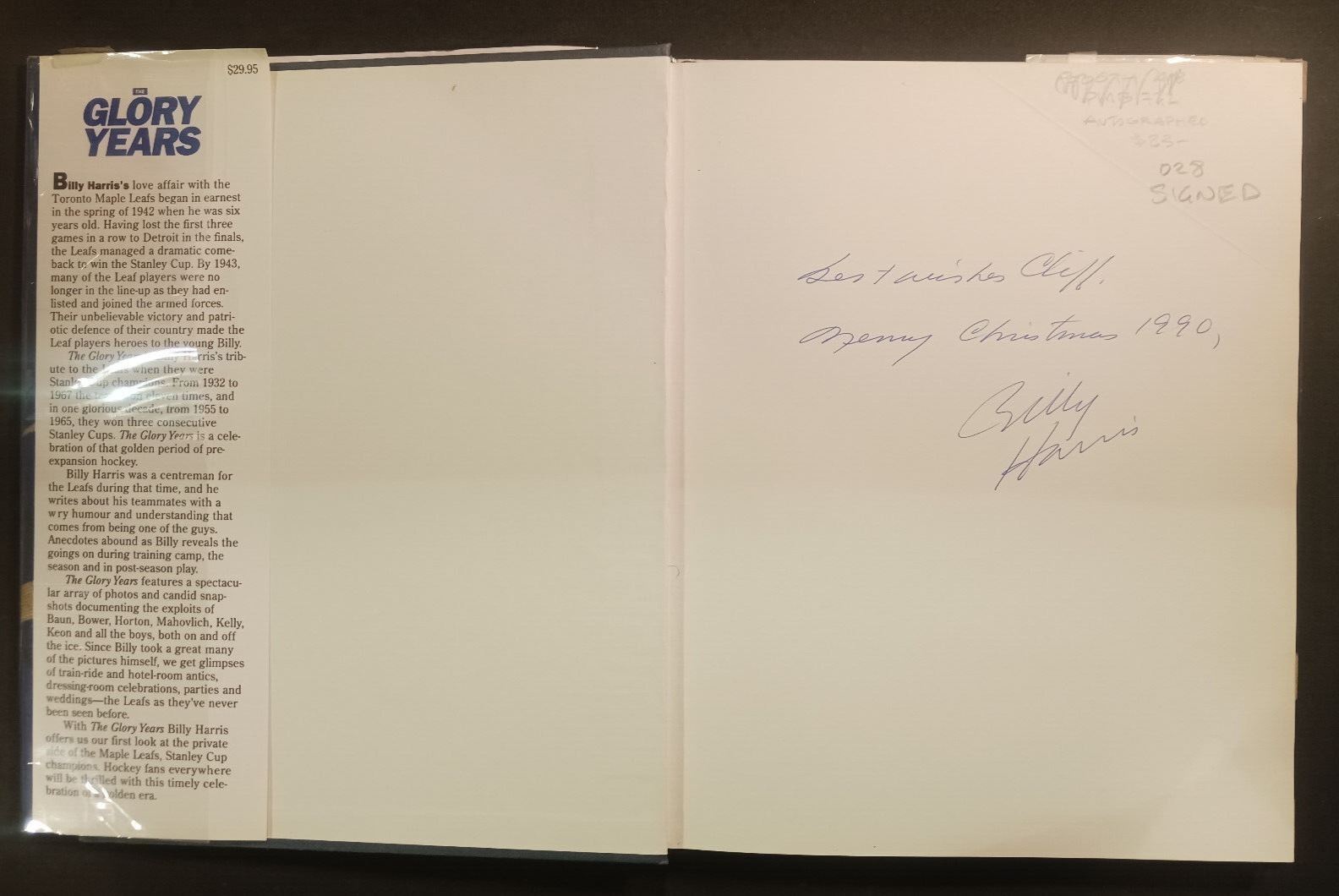 Signed Billy Harris 1990 Glory Years Maple Leafs