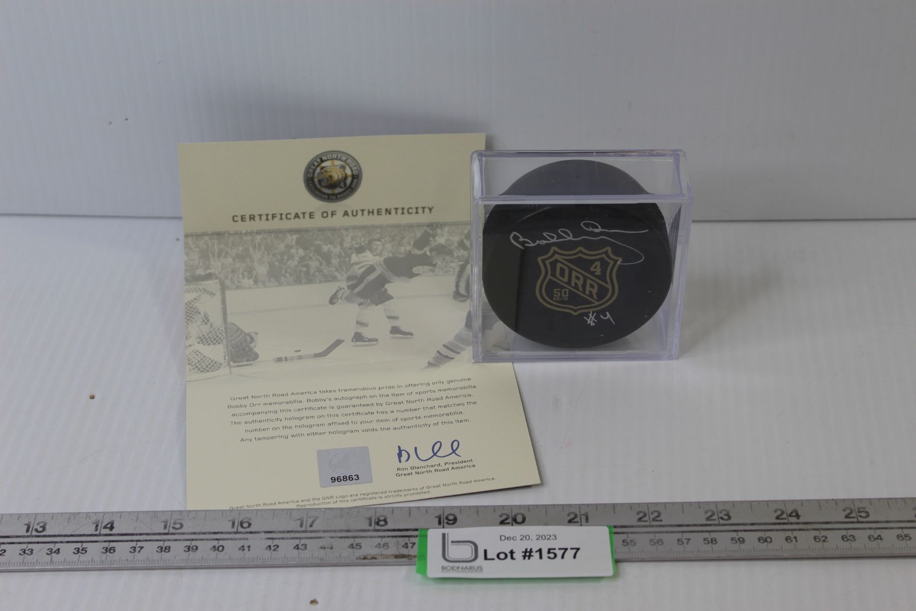 Signed Bobby Orr Hockey Puck w/Certificate of Authenticity - Sealed in Plastic Case