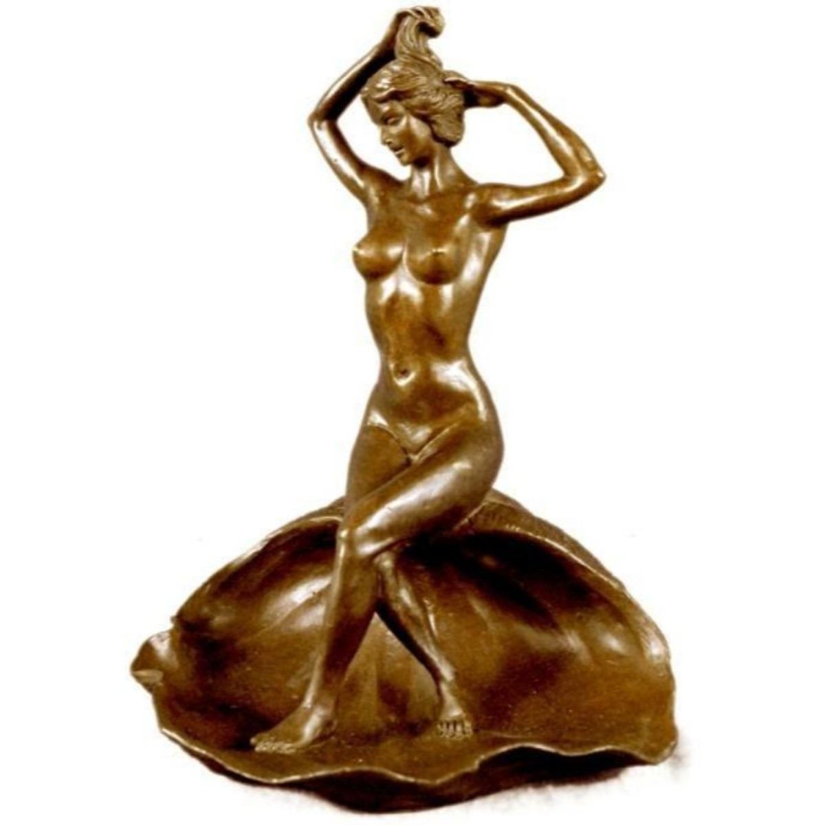Signed J.F. Brines, art nouveau style jewel or trinket dish tray. Lost wax casting method bronze, with brown patina. 9" X 7 1/2" . 6lbs.