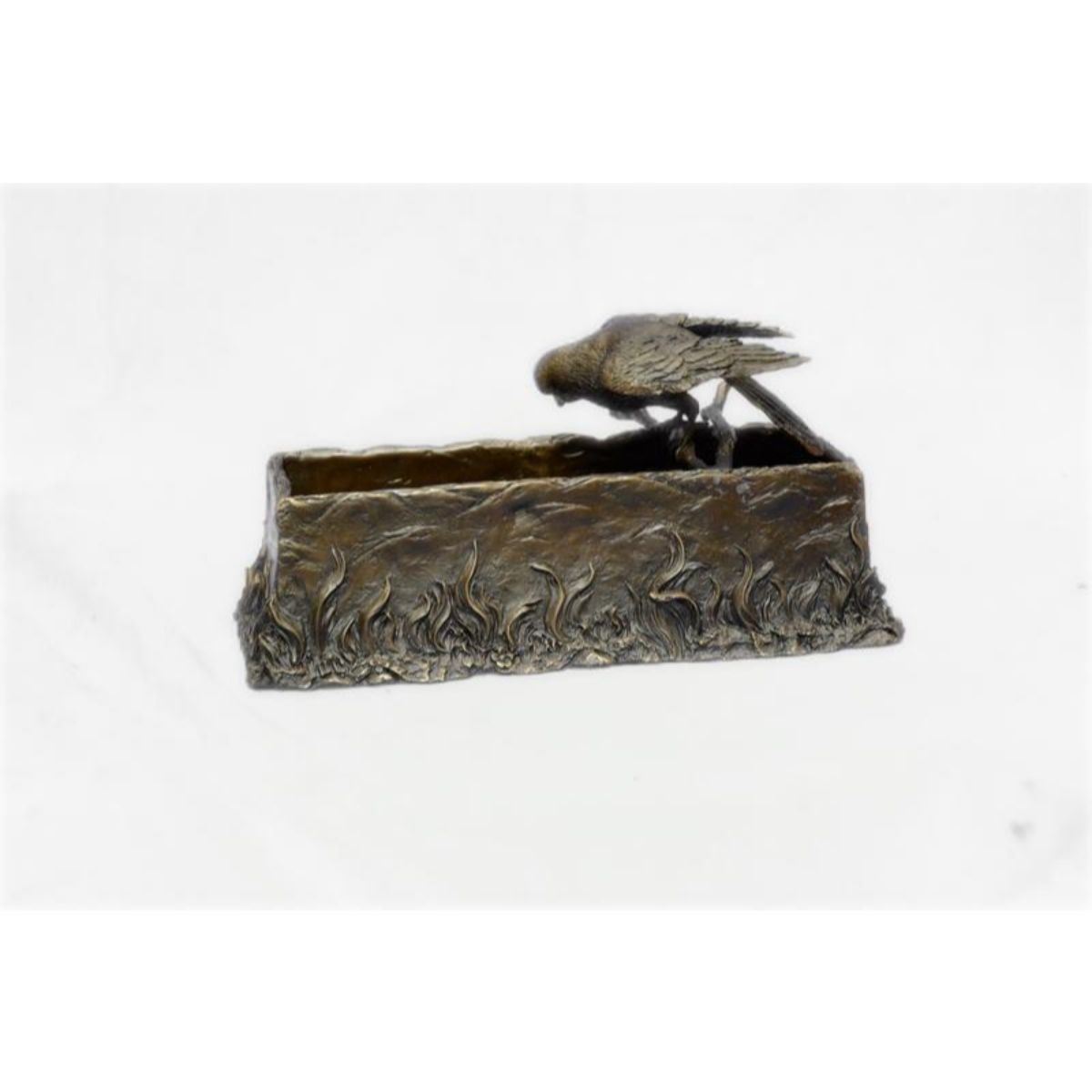 Bronze planter box sculpture, in the formof a songbird within a grassy landscape. Signed by the artist, Sautner. 5 1/2" HX 10" W. 6lbs weight.