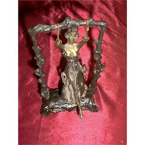 Signed Bronze Statue of a Swinging Lady. Measures 10" tall by 5" wide. In great condition. But I'm not sure if rope is missing from the swing. But, it is beautiful as it stands now. Looks perfect. Can't make out signature, but it is signed. Great bronze statue.