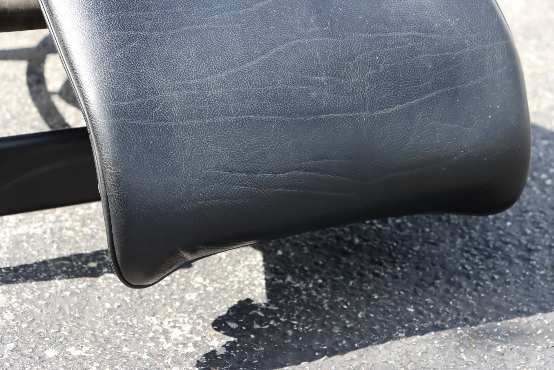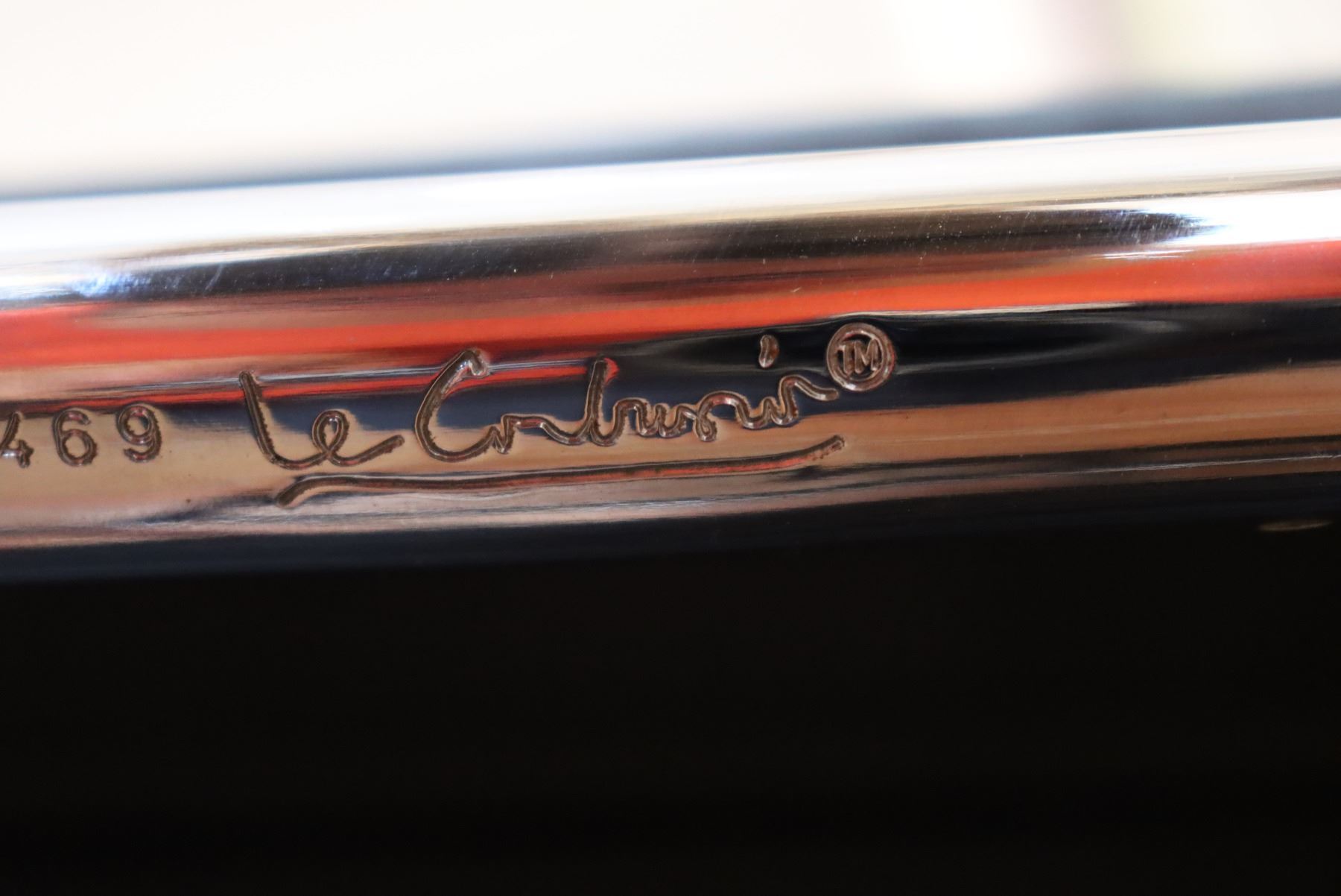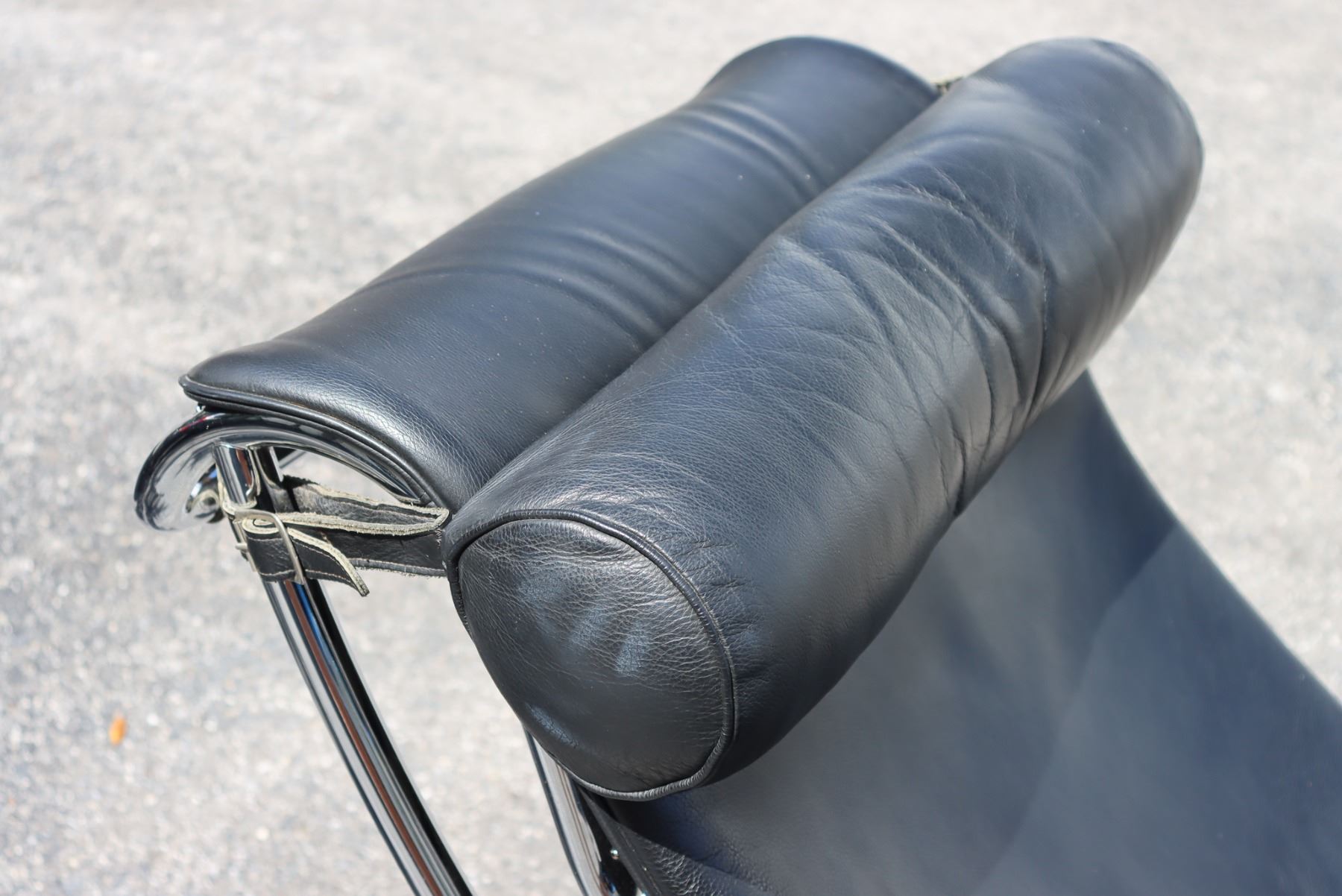 Stylish chaise lounge designed by Le Corbusier, Charlotte Perriand and Pierre Jeanneret in 1928, manufactured by Cassina, inscribed "Le Corbusier, LC/4" leather and chrome. SIze: 32 x 60 x 20 in.