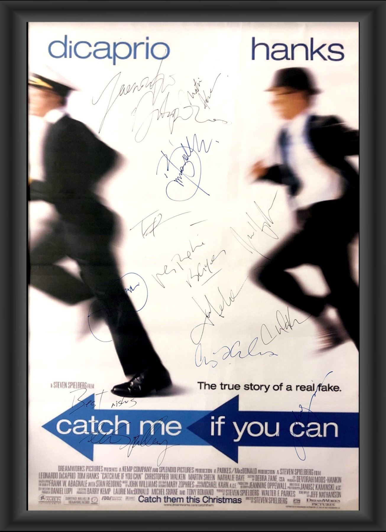 Signed by Frank John Hughes, Christopher Walken, Steve Eastin, Nathalie Baye, Amy Adams, Brian Howe, James Brolin, Martin Sheen, Steven Spielberg, Tom Hanks and Leonardo DiCaprio