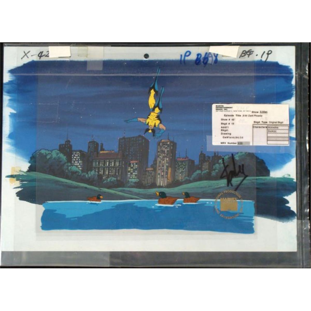 This is an original signed production cel and background from the hit series X-Men. Stan Lee signature is located at the bottom of cel in black sharpie. * Under a cloud of increasing anti-mutant sentiment, Professor Xavier creates a haven at his Westchester mansion to train young mutants to use their powers for the benefit of humanity, and to prove mutants can be heroes. Xavier recruited Cyclops, Iceman, Angel, Beast and Jean Grey calling them "X-Men" because they possessed the "x-gene", an ability normal humans lacked. Early issues introduced the team's arch enemy, Magneto and his Brotherhood of Evil Mutants, who would later battle the X-Men for years. * Check this out ducks; I bet you can't do this... * Original Animated Cel Overall Size of the Cel: 10 1/2" x 12 1/2" Overall Size of the background: 10" x 14" Excellent Condition This is an original hand-painted cel set-up used in the production of an episode of X-Men titled "Dark Phoenix." Each one-of-a-kind set-up represents a slight change in position of the characters. When individually photographed and projected in rapid succession, the images appear to move. * To create production cels, the original animator's drawing is transferred onto an acetate cel (by hand-inking and/or photo copying). The cel is then hand-painted on the reverse side. The background accompanying this set-up is an original production background. * The cel and original background is ready to be matted and framed. The animators notations are located at the top of cel and background. A ceritificate of Authenticity from Marvel is on the back of background. The Marvel Seal is located at the bottom right of the cel. The cel and background are in a protective sleeve An information card about the episode is located at the top right of the protective sleeve. *