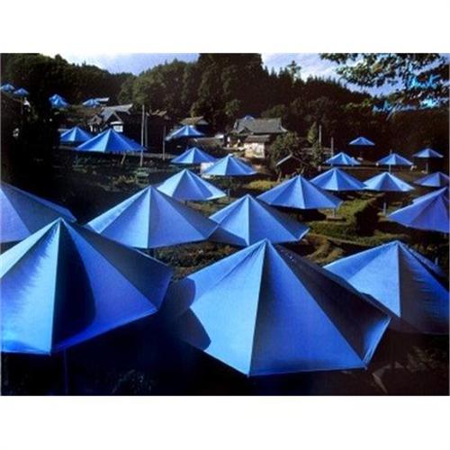 <tr><td>Title:Signed Christo Blue Umbrellas</td></tr>