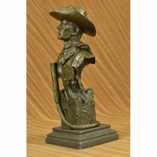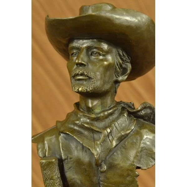 The "Buffalo Bill" bust shows the dignity and class of the aged master showman and scout in his later years. This bronze bust is a must for anyone's collection of western memorabilia. Only limited number of these hand-crafted works were created by artist Kamiko. This piece would provide a Western feel to any room, and is the perfect gift for Clint Eastwood and Dollar Trilogy aficionados, enthusiasts of the Western genre, or cowboys. Condition: This sculpture is in perfect condition. Bronze Dimensions with Marble Base:Height 13" x Width 6" Marble Dimensions:5" X 5" Height without base: 12" Weight :11 LBS Inventory : 16YRD11915361