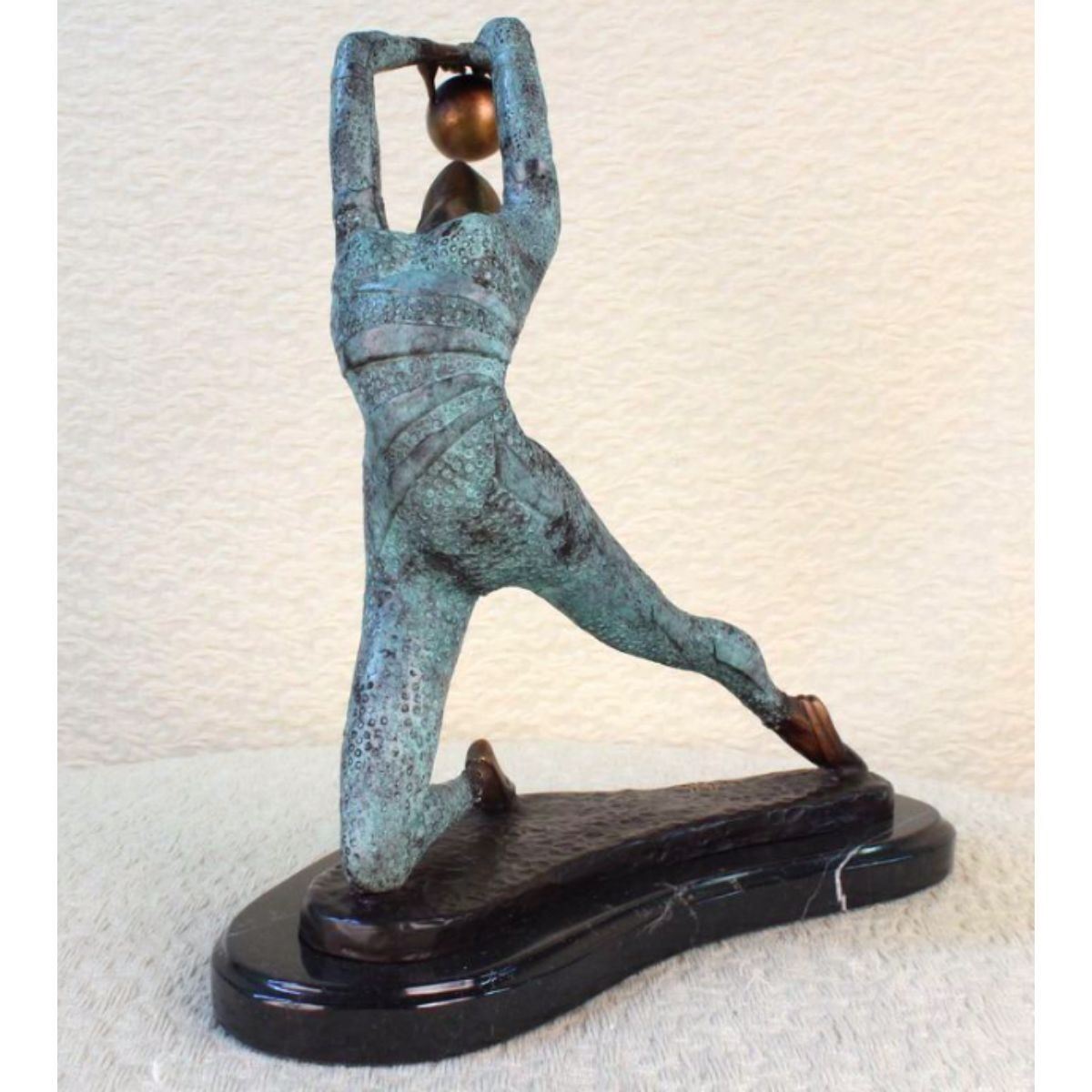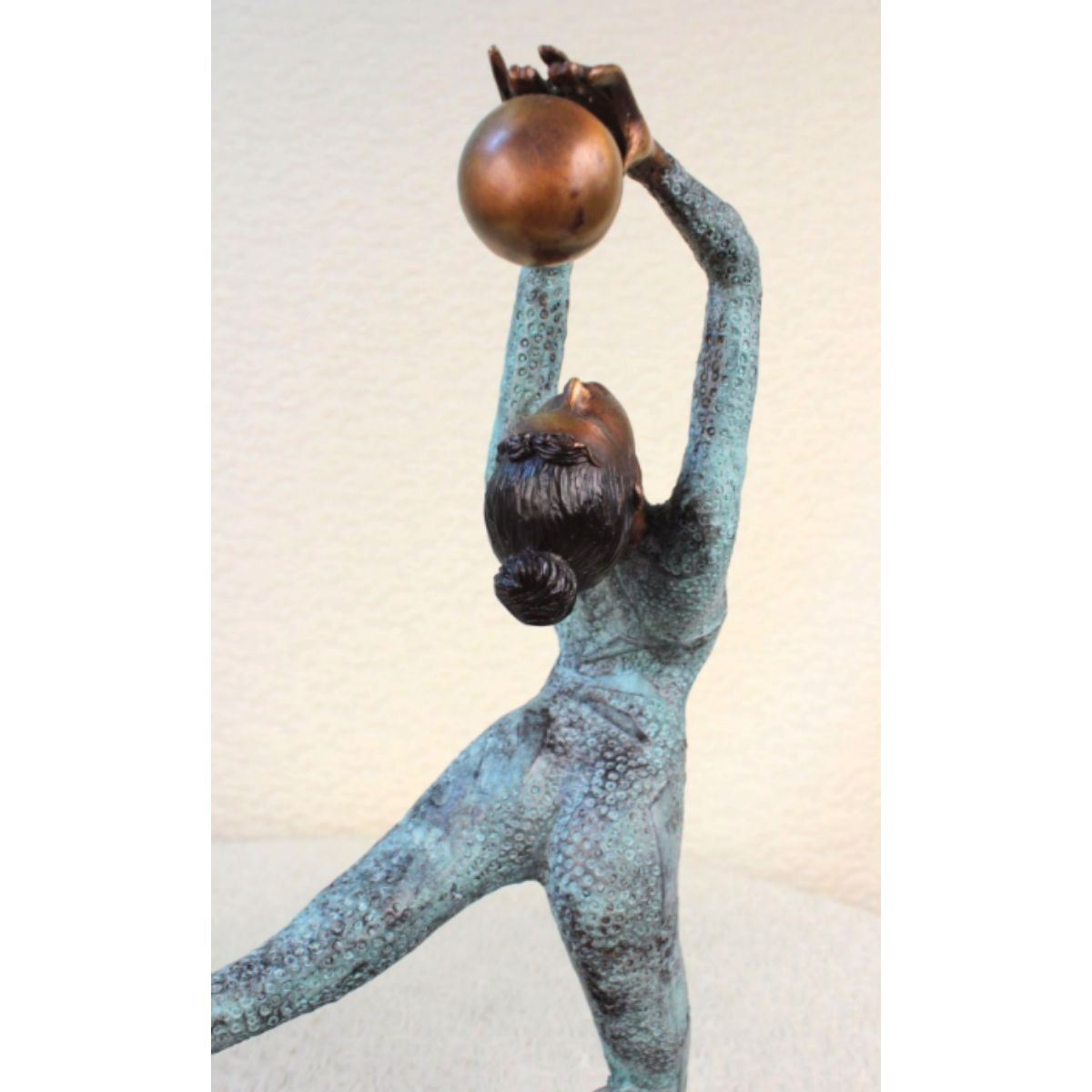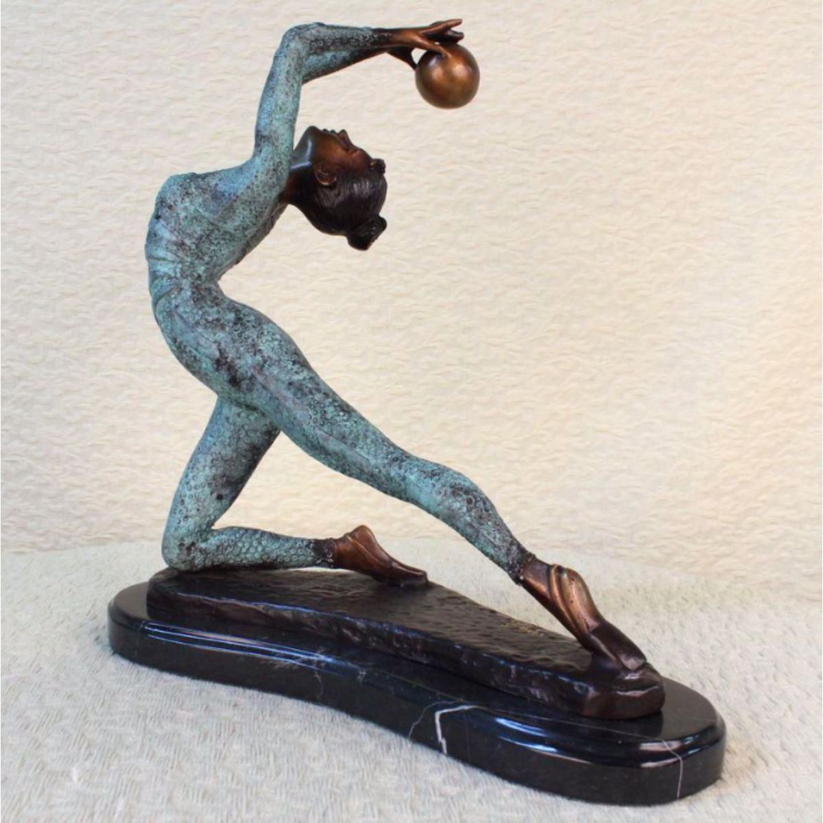Dancer sculpture, signed by the artist Collett, original last wax casting method bronze, with aged green textured patina, mounted on a marble base. 15" H X 16" W. 12lbs.
