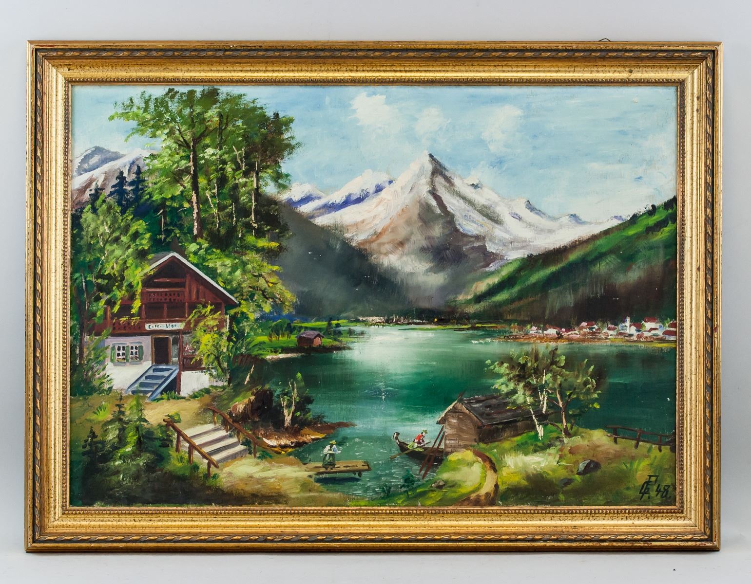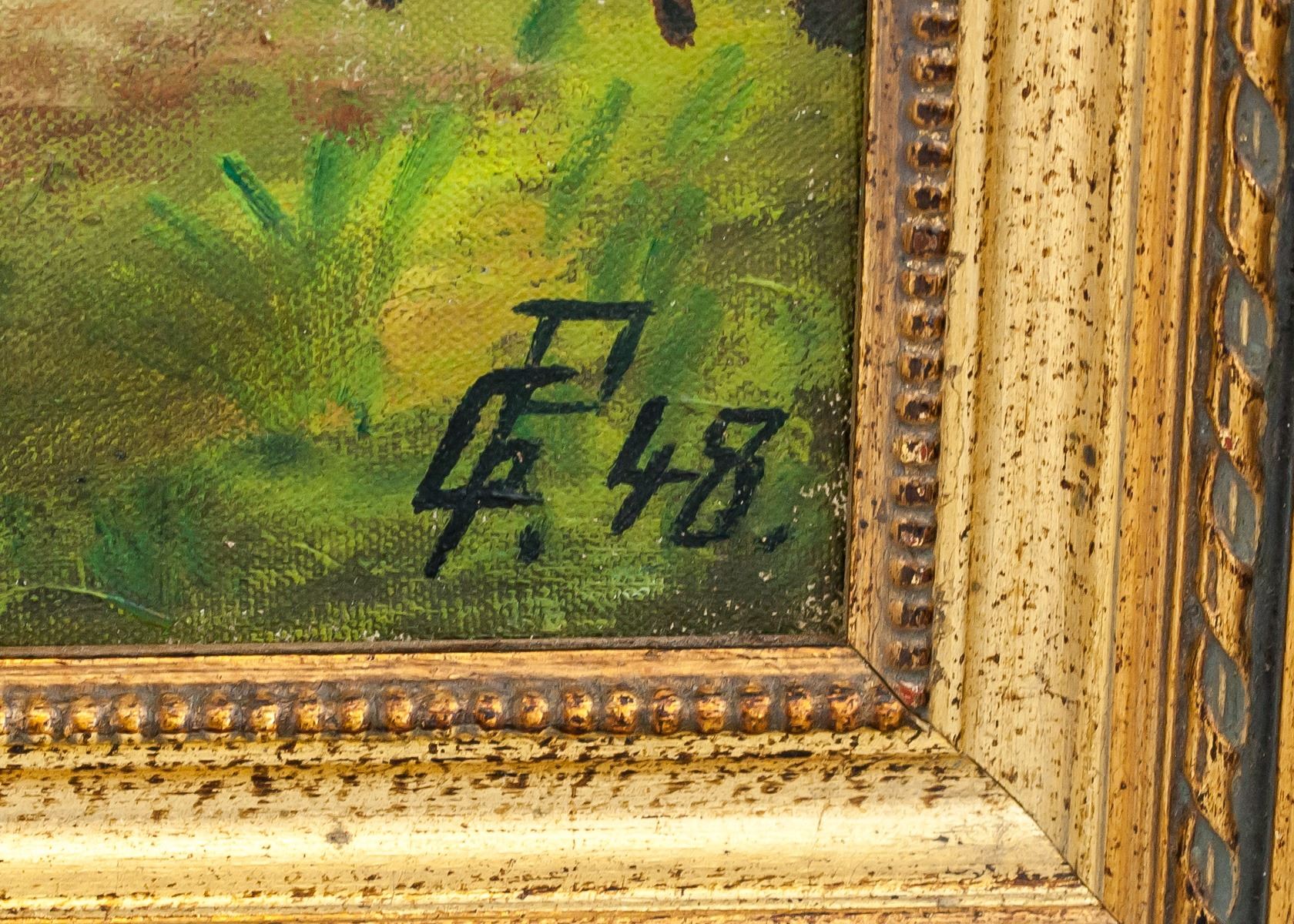 Oil on board, framed. Featuring a landscape scene of cottage. Signed on the lower right corner with monogram and inscribed 48. 46 x 66 cm 918 x 26 inches). Framed size: 55 x 75 cm (21.5 x 29.5 inches). PROVENANCE: This lot has limited provenance from a private German collection
