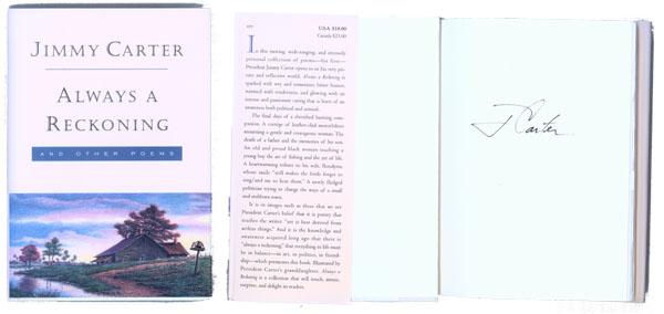 Signed copy of Always a Reckoning and Other Poems by Jimmy Carter. Illustrations by Sarah Elizabeth Chuldenko. First Edition. 5 3/4” x 8 1/4”. 130 pages. Hardcover with original jacket. Times Books, Random House New York. Signed on front endpaper, “J. Carter. Extremely Fine.