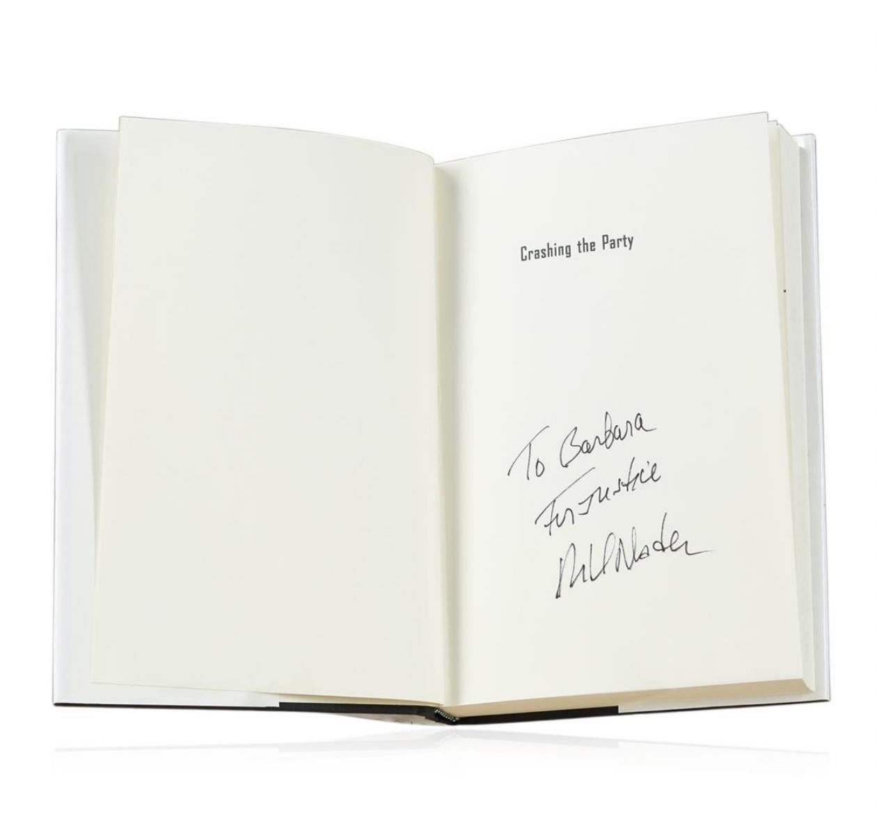 A Signed Copy of Crashing the Party: Taking on the Corporate Government in an Age of Surrender by Ralph Nader.