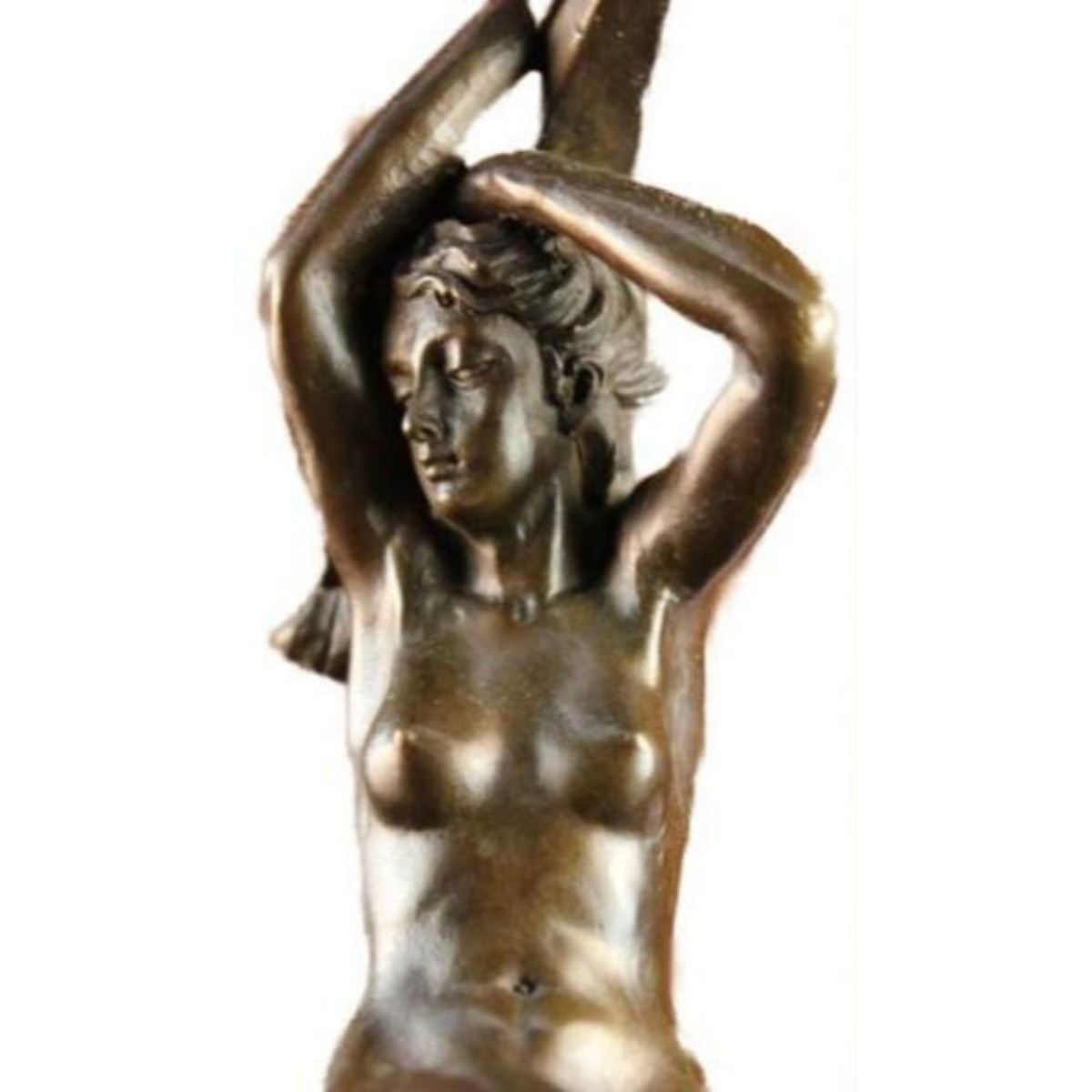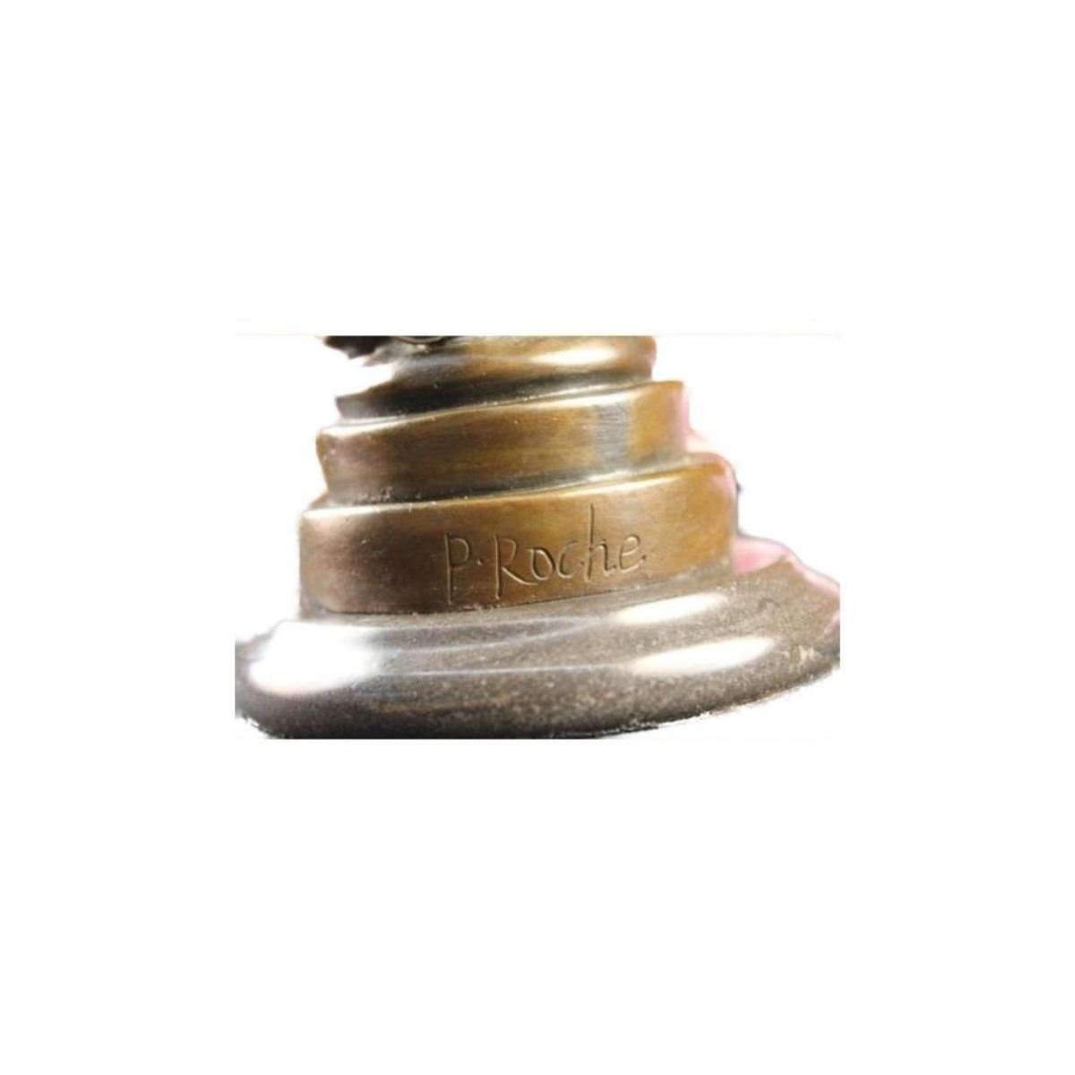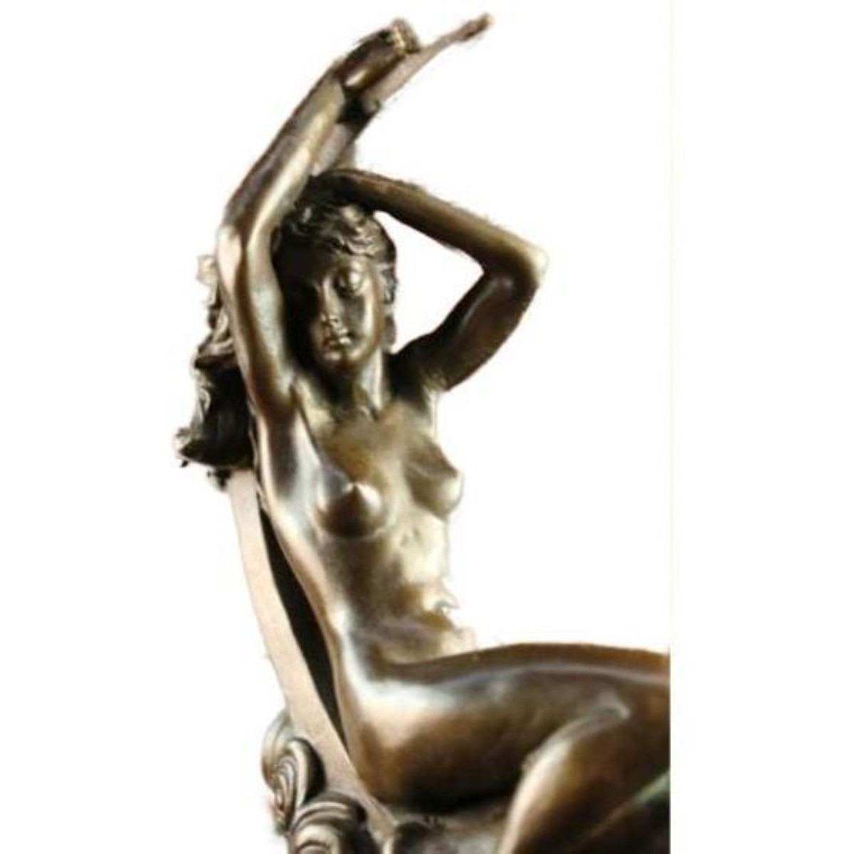 Signed Roche sculpture, beautiful nude woman resting on a crescent moon, with swirled clouds beneath, upon a bronze plinth. Lost wax casting method bronze, with brown patina, mounted on a marble base. 11" X 8". 5lbs.
