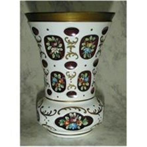 <tr><td>Title:Signed Czech White Cut To Cranberry Vase</td></tr>
