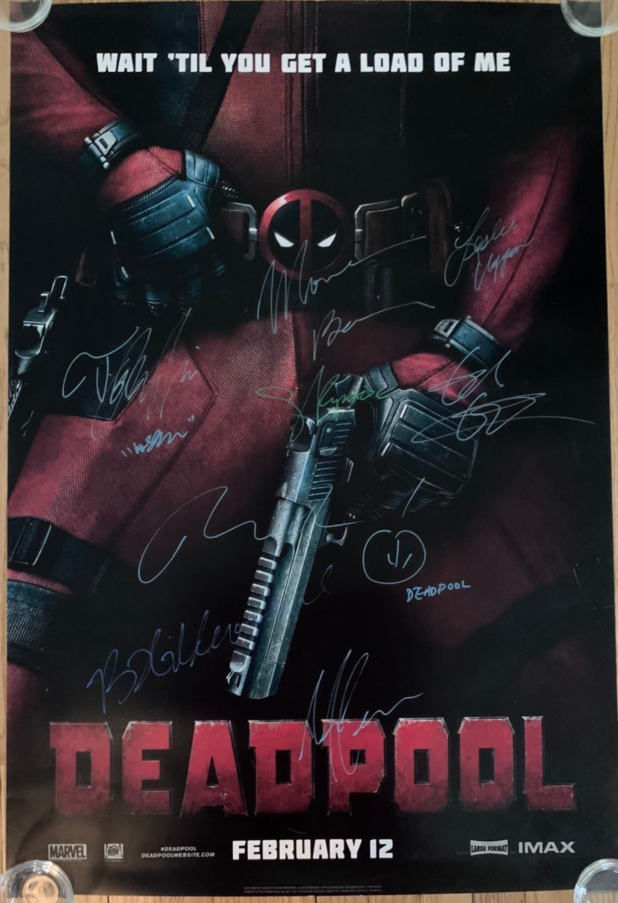 Signed by Ryan Reynolds, Morena Baccarin, Gina Carano, Ed Skrein, T.J. Miller, Brianna Hildebrand and Stan Lee
