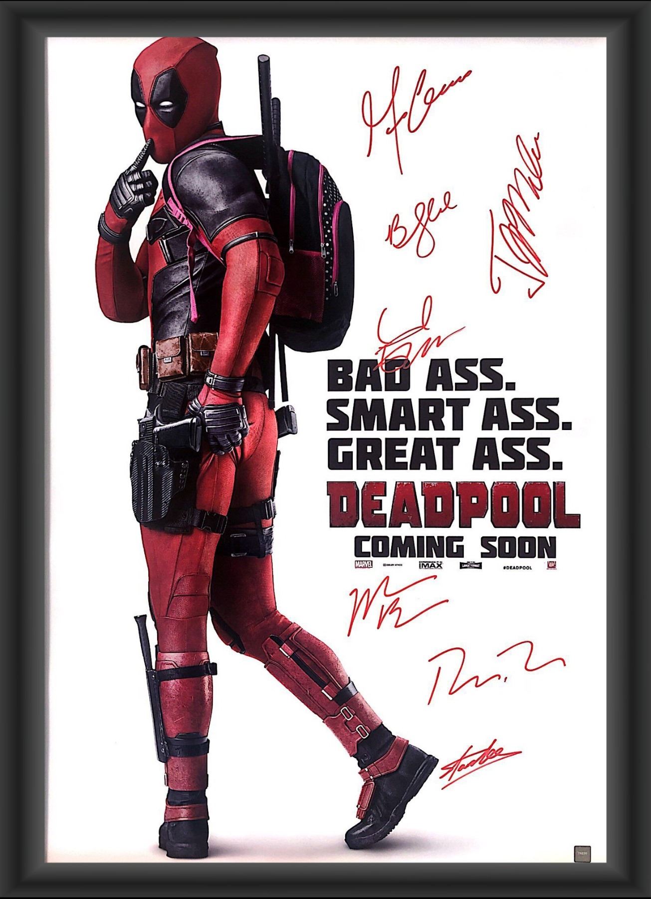 Signed by Ryan Reynolds, Morena Baccarin, Gina Carano, Ed Skrein, TJ Miller, Brianna Hildebrand, and Stan Lee