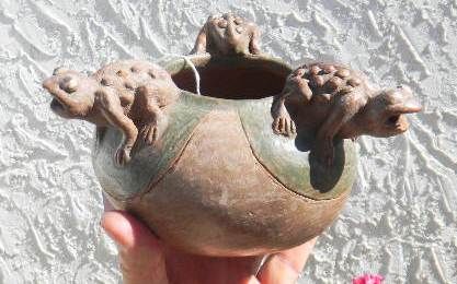 Effigy Frog pot signed by S. Ibarra. The painted pottery from Mexico maybe 1950's. Measures 7x7x4 inches. Shipping $14.50