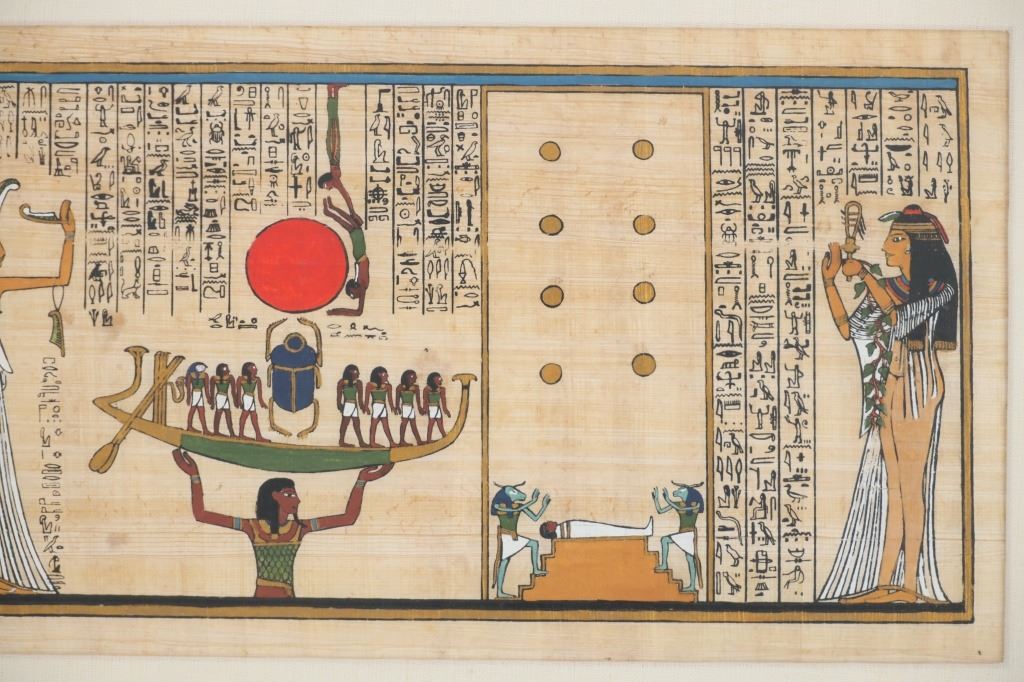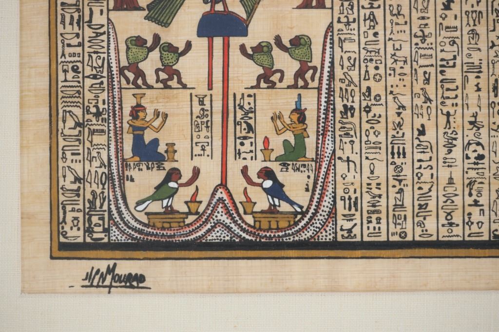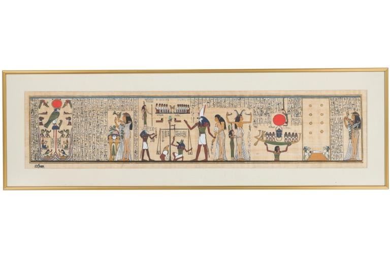 Signed Egyptian Papyrus Art, "The Final Judgement"