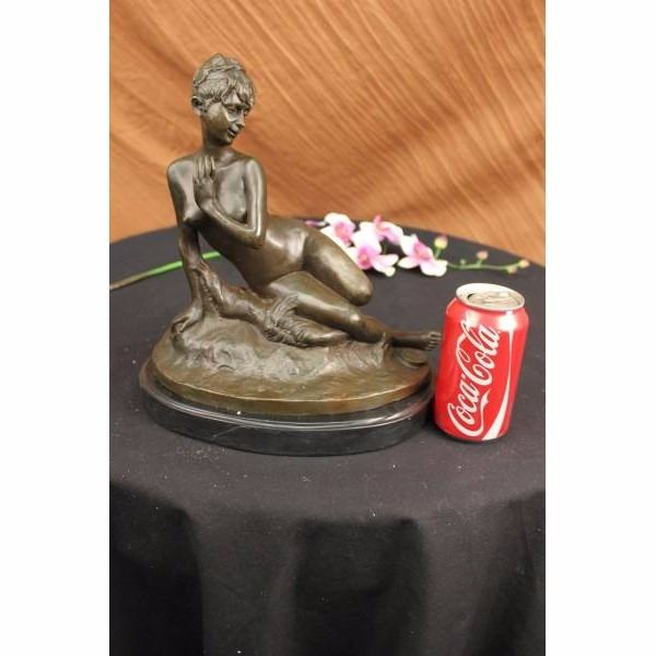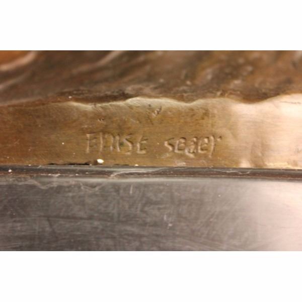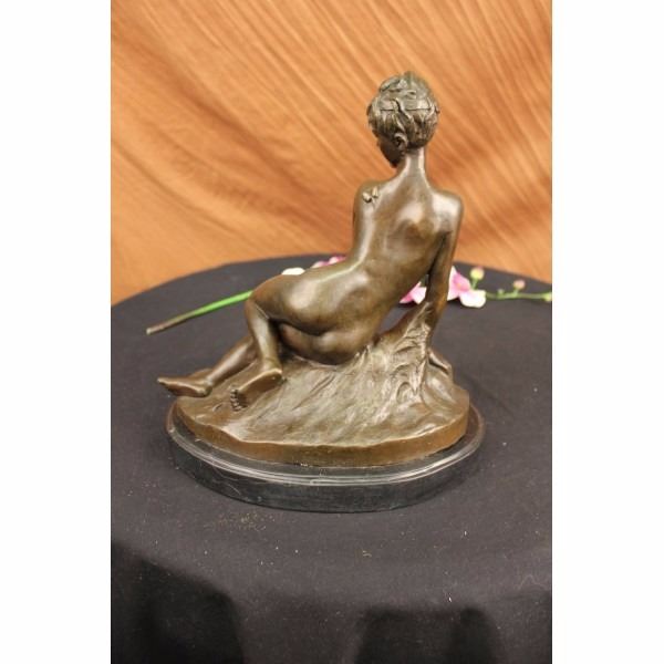This beautiful lady lays on one side completely nude and poses for the camera without a care in the world that she is in pain because of the branches. She looks gracefully and stunning as she looks towards the ground and one of her arms is raised up by her bare chest. She is casted using the ancient old "Lost Wax Method" stained in brown patina. Mounted atop a black marble base and signed by the artist Ernst Seger Condition: This sculpture is in perfect condition. Bronze Dimensions with Marble Base:Height 12" x Width 10 1/2" Marble Dimensions:Diameter 10 1/2" Height without base: 11" Weight :12 LBS Inventory : 71X22554617
