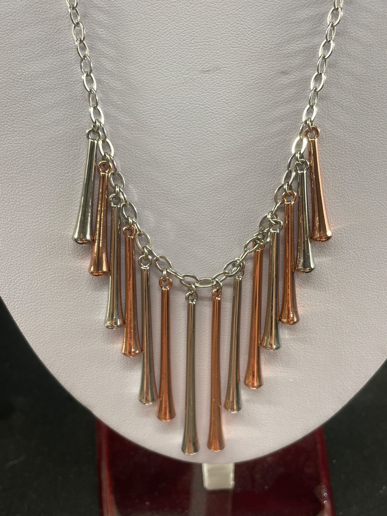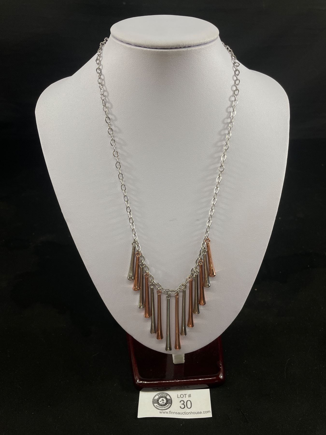 Signed FAC Designer Rose Gold and Silver Necklace- Fifth Avenue Collection