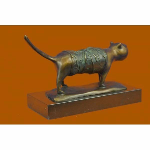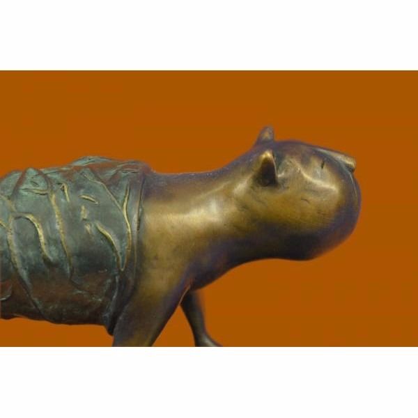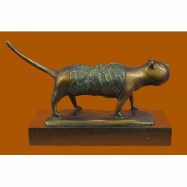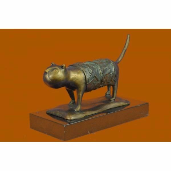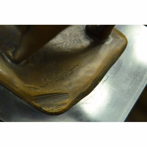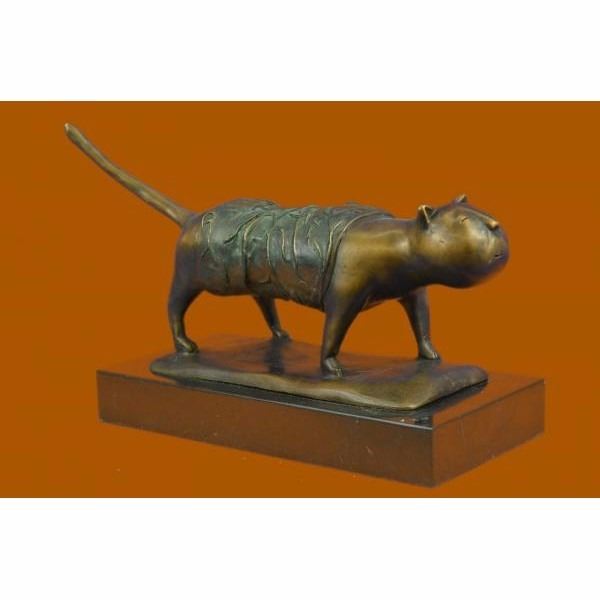 This cat is a bronze figure, modeled after the so-called "Fat Cat" by Fernando Botero. The Colombian artist is famous for its over-sized human and animal figures. In addition to cats, he has represented horses and birds in a grotesque opulence, which can be seen for example in Berlin and Singapore in public places. The sculpture on the left is signed at the same place like the original.The product is poured by hand and was cast in bronze using the lost wax method, which guarantees a high degree of dimensional accuracy and surface quality. The production is subject to our strict quality guidelines. Condition: This sculpture is in perfect condition. Bronze Dimensions with Marble Base:Height 7" x Width 11" Marble Dimensions:9" X 4.5" Height without base: 6" Weight : 9 LBS Inventory : 65AL4204256