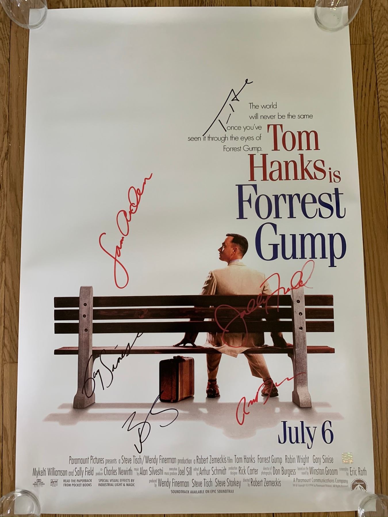 Signed by Tom Hanks, Robin Wright, Gary Sinise, Sally Field, Robert Zemeckis, Sam Anderson