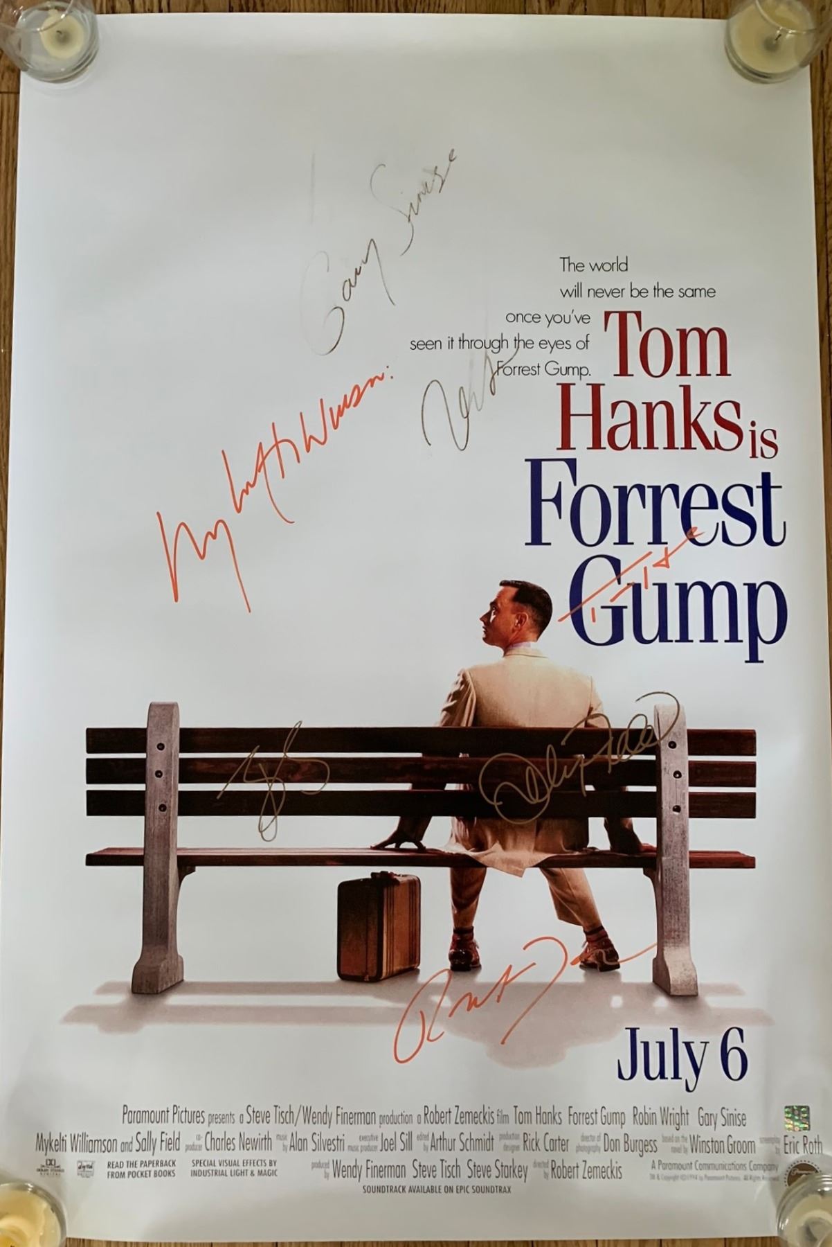 Signed by Tom Hanks, Robin Wright, Sally Field, Gary Sinise, Mykelti Williamson, Sam Anderson and Robert Zemeckis