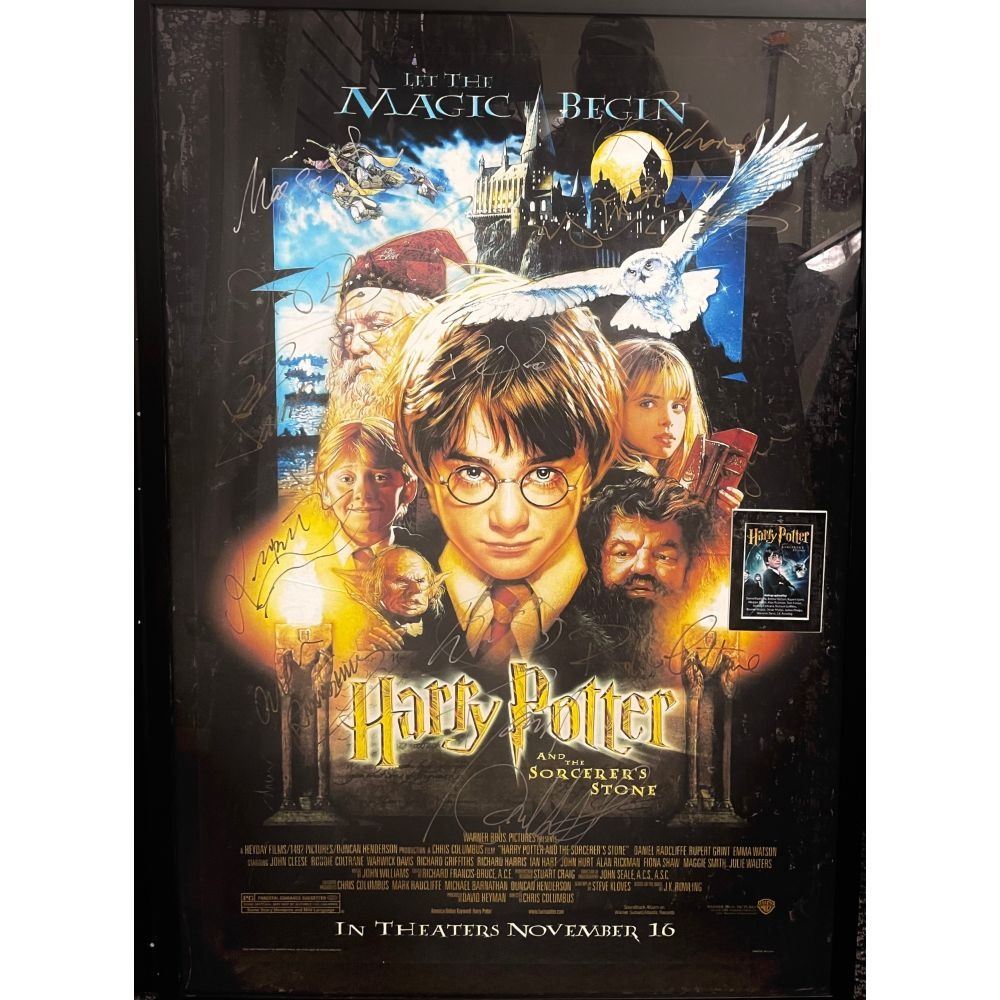 Signed by JK Rowling, David Radcliffe, Emma Watson, Rupert Grint, Maggie Smith, Alan Rickman, Tom Felton, Robbie Coltrane, Richard Griffiths, Bonnie Wright, Oliver Phelps, James Phelps, Warwick Davis