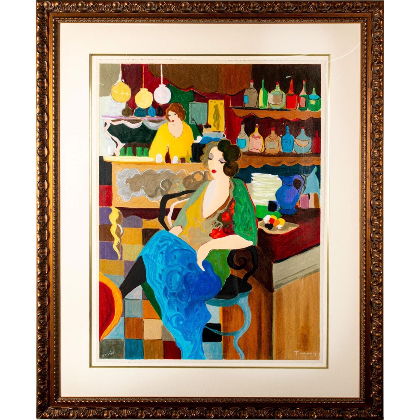 Signed Framed Tarkay Original Serigraph, Cafe Select I