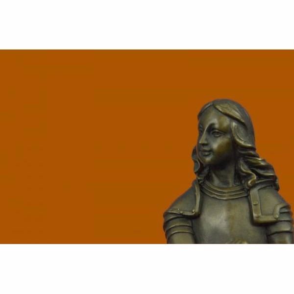 Beautiful bronze sculpture tribute to joan of arc by french masterFremiet features exquisite detail. Condition: This sculpture is in perfect condition. Bronze Dimensions with Marble Base:Height 11.5" x Width5" Marble Dimensions:5" X 5" Height without base: 10.5" Weight :8 LBS Inventory : 17YRD11303671