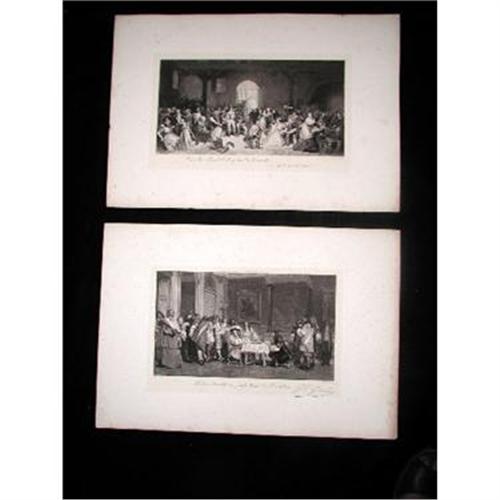 Beautifully illustrated French engravings signed by J. L. Gerome "Moliere Breakfasting with Louis XIV at Versailles",photogravure by Goupil & Cle and "The Last Roll Call of the Condemned" signed by Ch 'L' Mullon,copyrighted 1881 by George Barrie. There is a separate sheet for the J. L. Gerome engraving stating this is from the collection of Mr. James H. Stebbins,New York. Both in excellent condition,minor light age spotting along last 1/2 inch that would be inside a mat and frame. 16.75 X 11.75H.