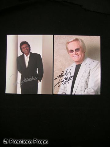 This is a pair of glossy, color signed photos of legendary singer/musicians George Jones and Johnny Mathis. George Jones, known for his marriage to country star Tammy Wynette and a litany of hit records, has been referred to as the greatest living country singer. The photo is signed 'Thanks. George Jones' in black ink. Legendary singer Johnny Mathis, also known as John Royce, has had many albums reach gold and platinum status and has sold over 350 million records worldwide. The photo features Mr. Mathis in a black & white suit and is signed in silver felt ink. (measures approx. 8" x 10" ea.)