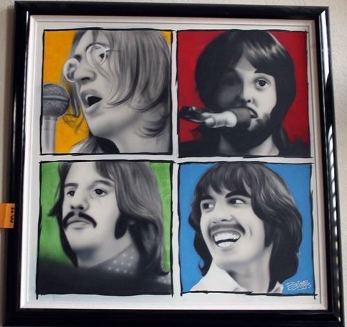 Giclee of the Beatles, bears the signature Briggs, beautifully museum framed. Unframed dimensions approx 30 x 27