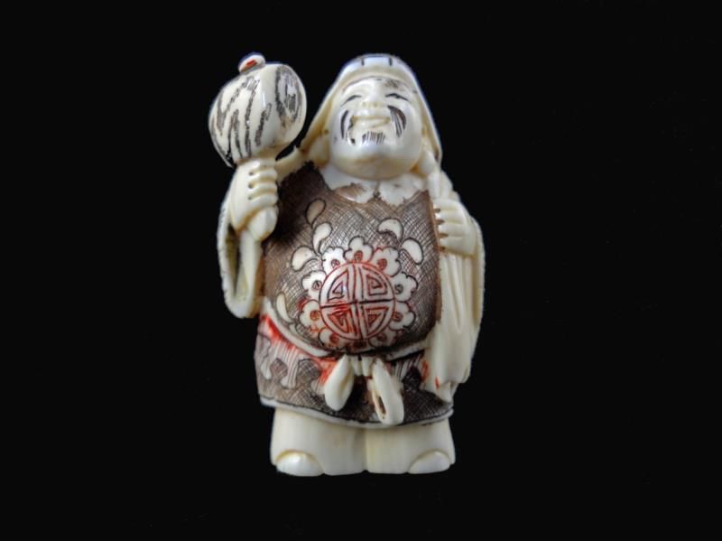Signed Hand Carved Ivory Netsuke Figure measures 2 inches tall