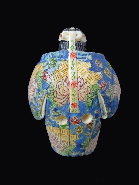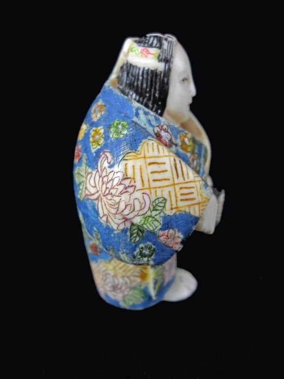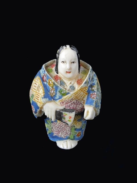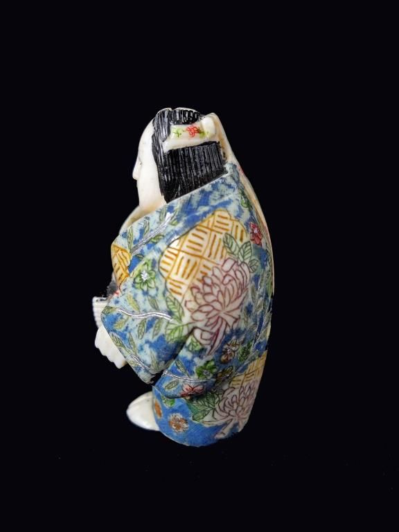 Signed Hand Carved Ivory Female Netsuke measures 2 inches tall