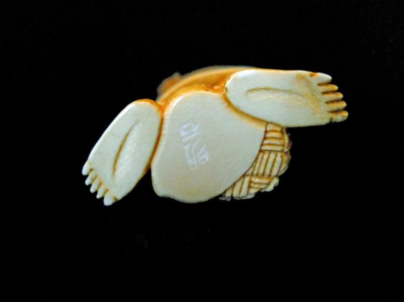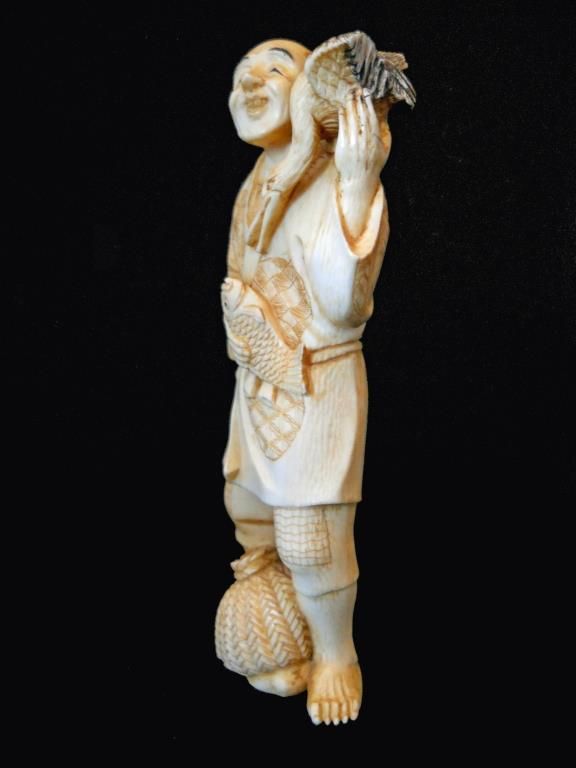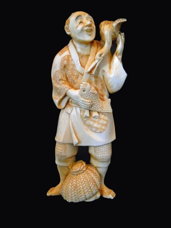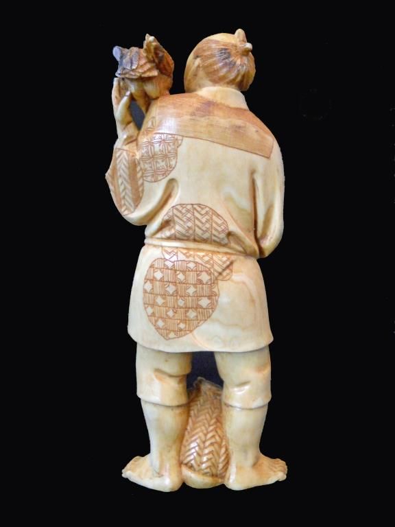 Signed Hand Carved Ivory Netsuke Figure measures 4 1/2 inches tall
