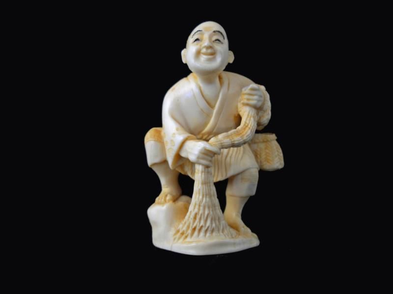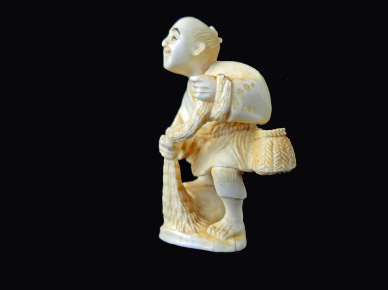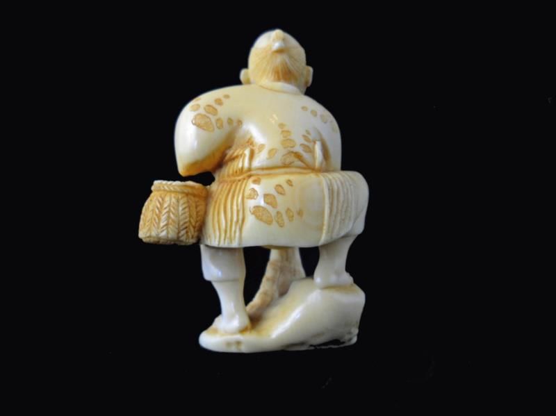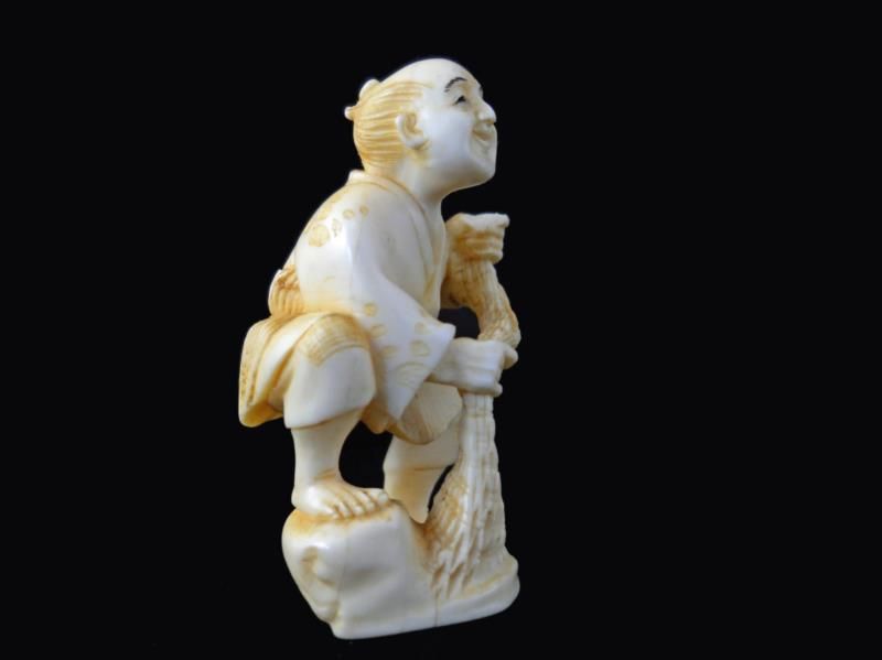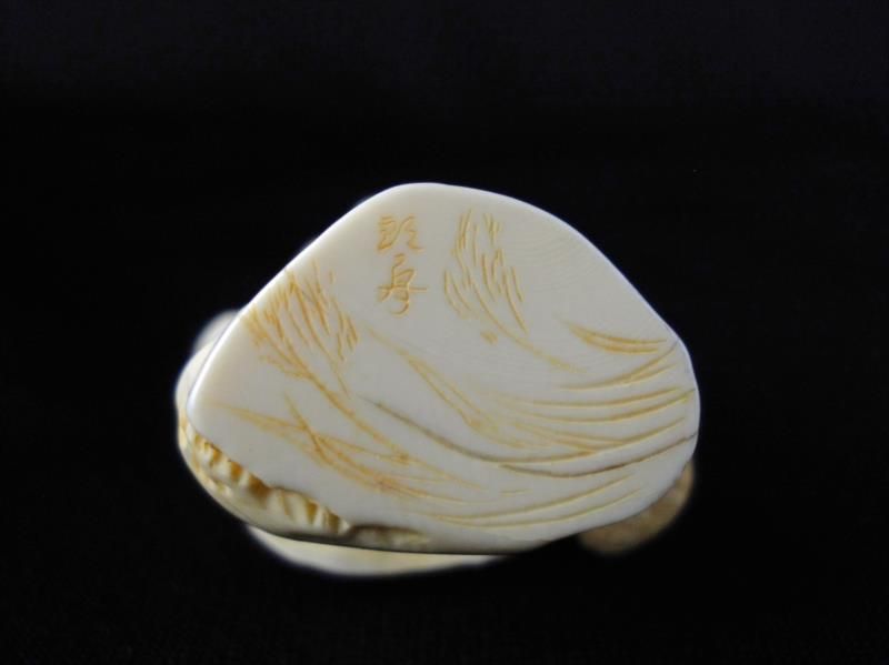 Signed Hand Carved Ivory Netsuke Figure measures 2 inches tall