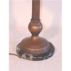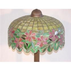 Signed Handel table lamp with dogwood shade. Measures 14 3/4" to bottom of shade and 24 1/2" tall to top of shade. Contains over 500 pieces of opalescent shade.