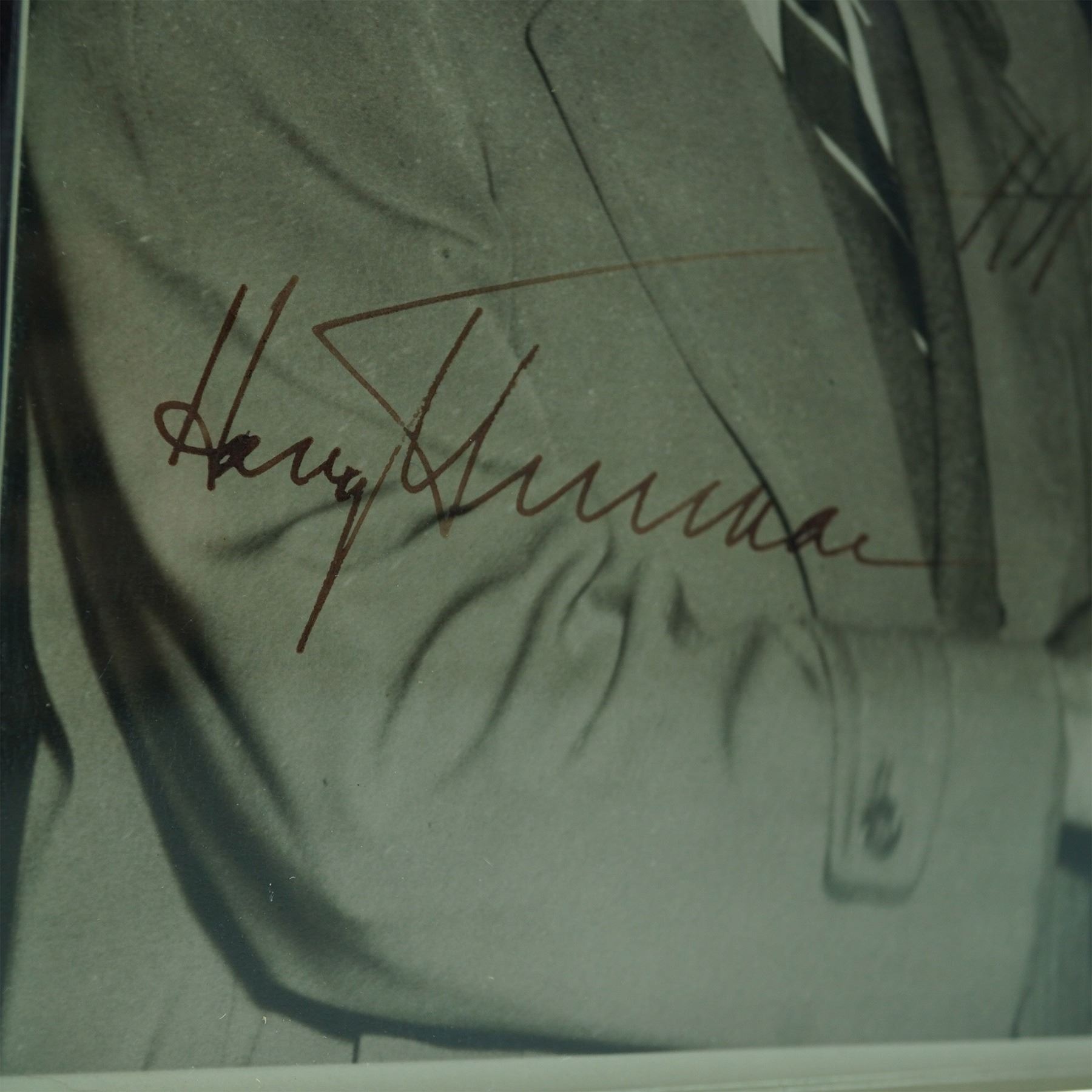 The photo not only captures the stature and camaraderie of three towering figures of mid-20th century American military and political life, but also stands as a testament to the Truman administration's commitment to international rebuilding and military restructuring in the early Cold War era. Frame measures 10.5"L x 8.5"H.