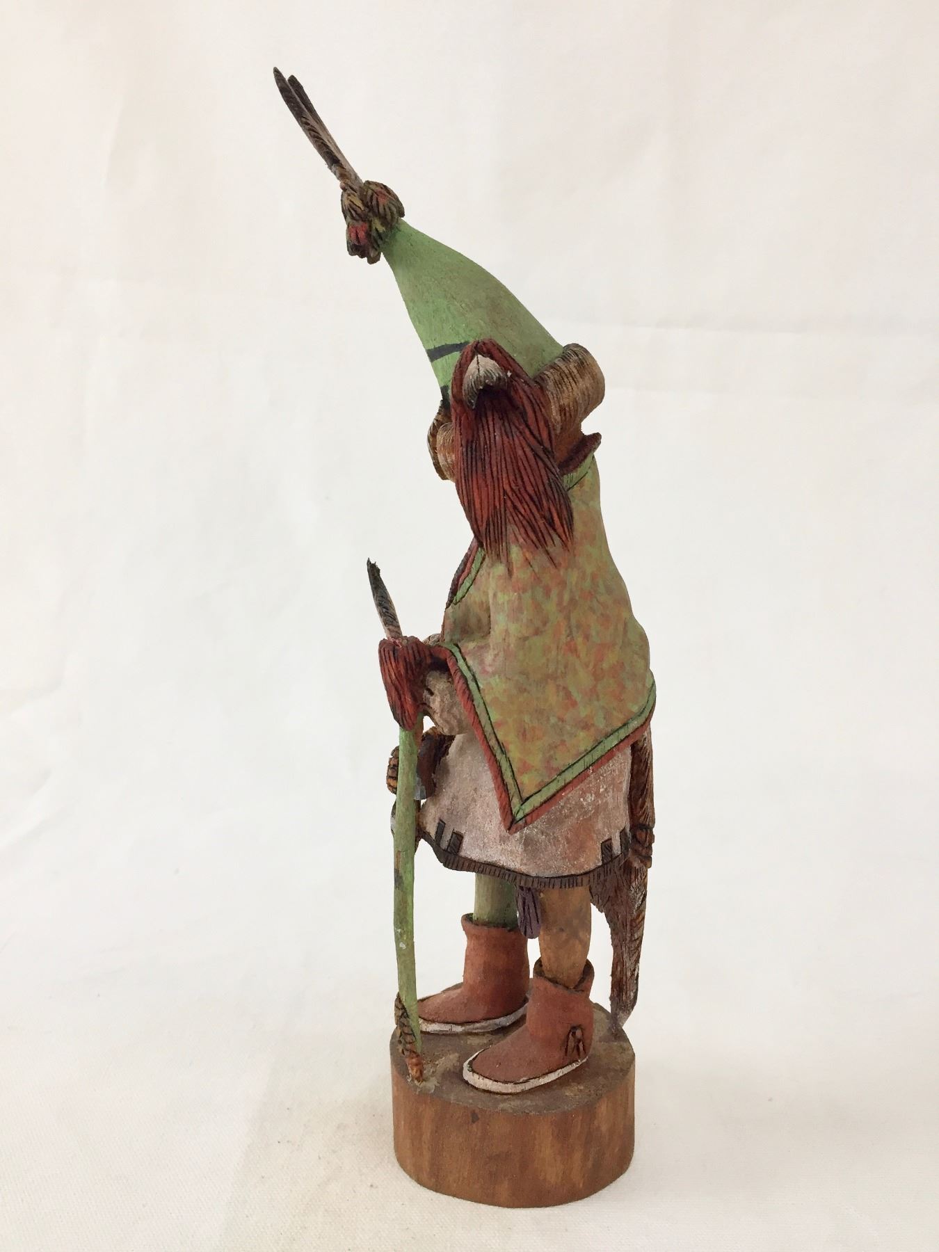 Description: For sale in this lot is a unique Hopi Kachina that has been hand carved and hand painted by the artist. Maker: Signed, MLK Yahdema. Approx. Age: Fairly Contemporary. Size: 2-3/8”w x 10”t. Condition: Good for its age, normal wear expected. Please look closely at the pictures - they are an important part of our description. Shipping: There will be a $10 handling / packaging fee for shipping this lot. The actual cost of postage will be added on top of that.