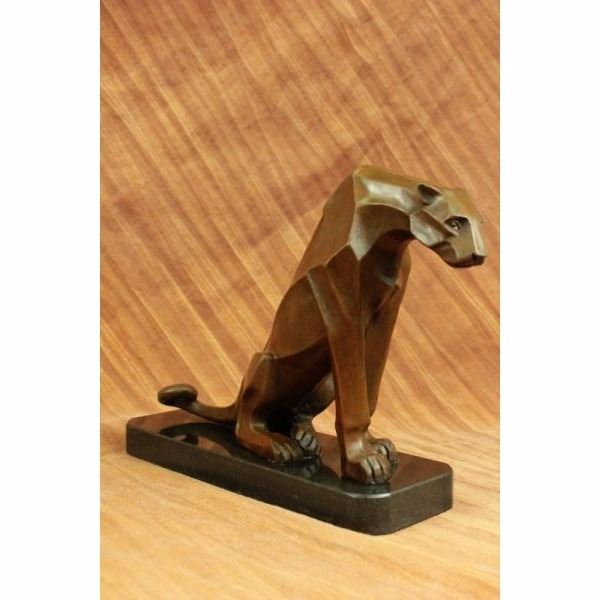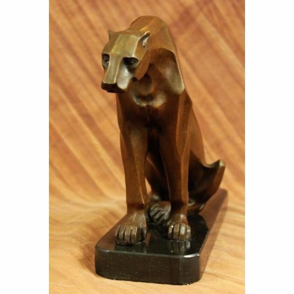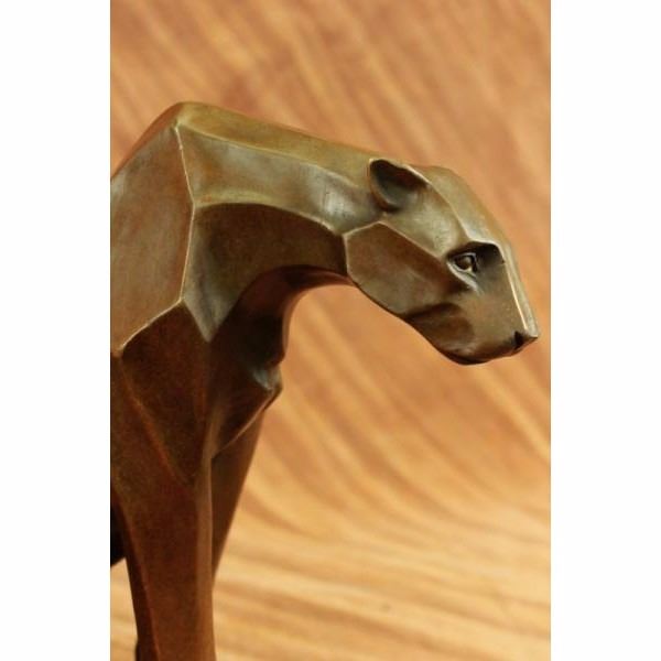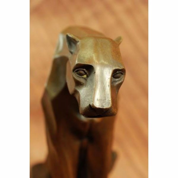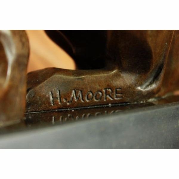 Though the most feared and lethal predator of the jungle, the beauty of a lion is undeniable. This 100% carefully handmade and fully detailed sculpture includes the smallest details of the king of all wild cats, including the stretch of its limbs, cut of its muscles, curve of its back and glare of its watchful eyes. Hints of gold glint from it's mane as if struck by rays of sunlight while on the prowl in an open field searching for its latest meal. This is a two-toned brown patina with gold highlights, using the Lost Wax Method and mounted on a black marble base and is signed H. Moore Description Condition: This sculpture is in perfect condition. Bronze Dimensions with Marble Base:Height 10" x Width 15" Marble Dimensions: 12" X 4" . Height without base: 9 " Weight : 10 LBS Inventory: 32DW0575623