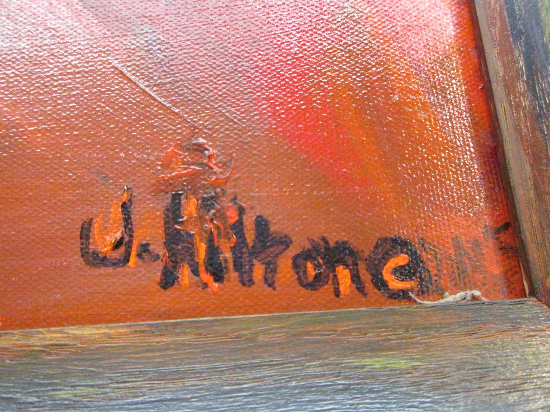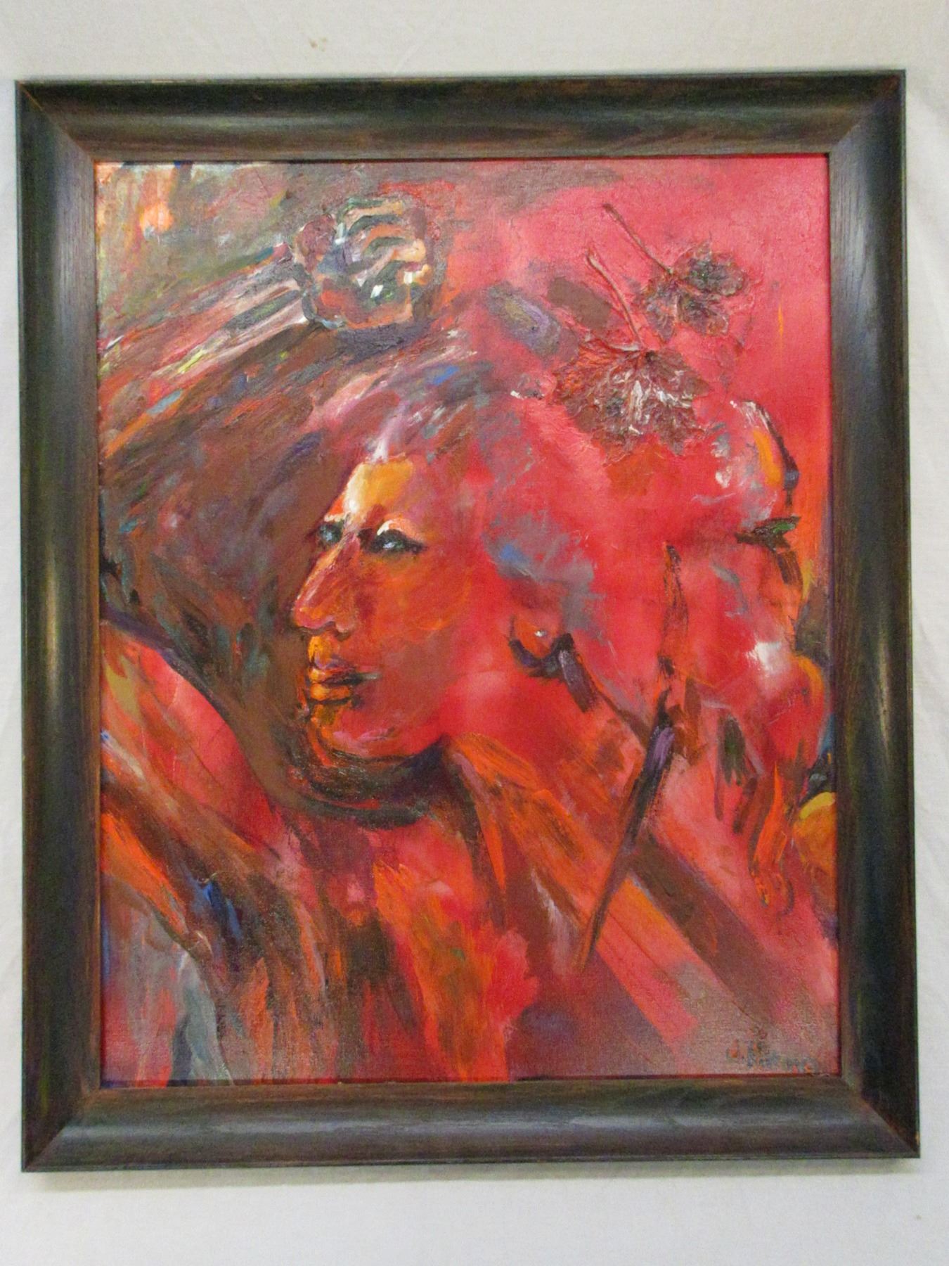 Signed Indian Oil Painting- J Hilton- Frame 34" X 28"