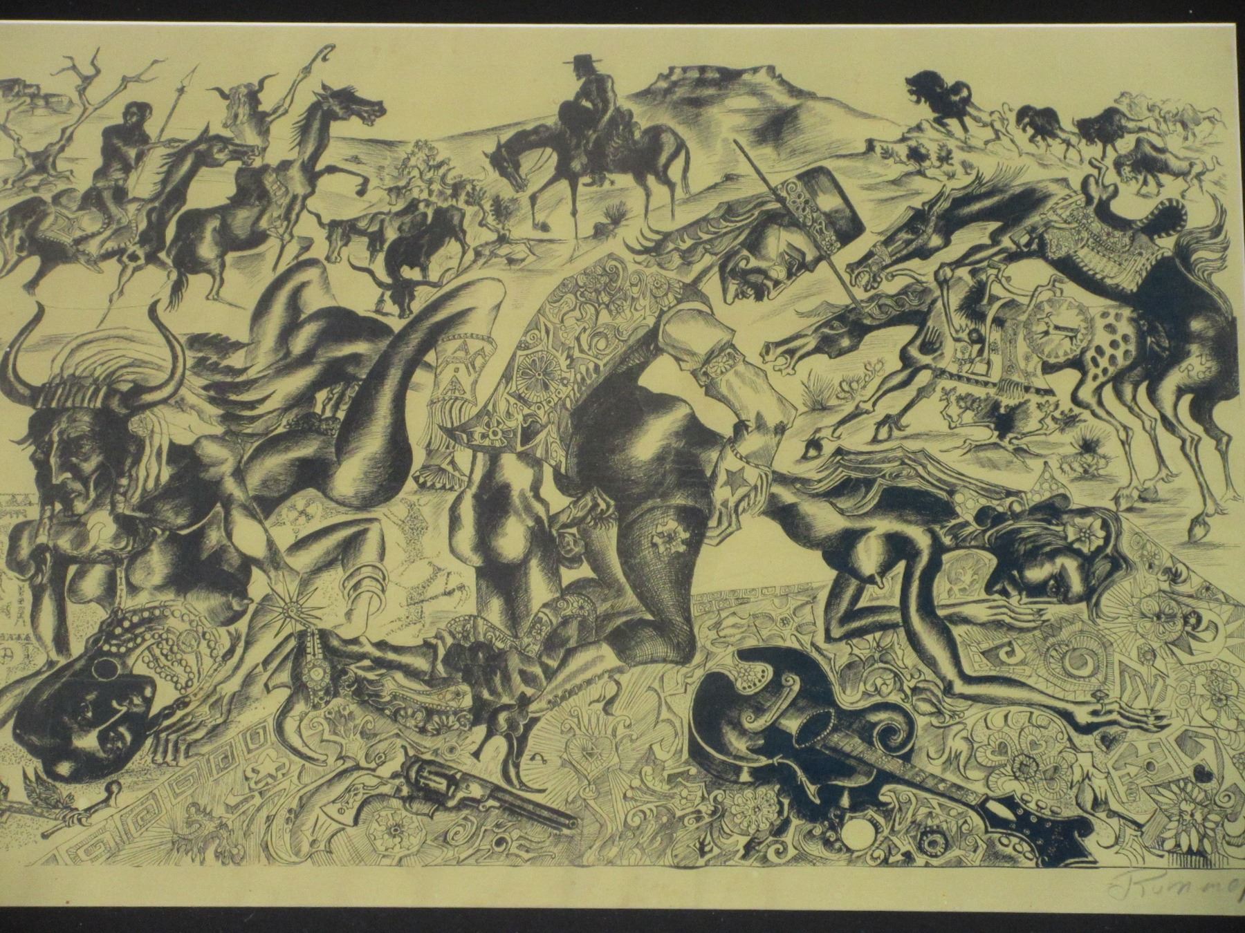 Signed J Rummel Picture- Jay Was One of Missoula Montana's Most Famous Artists- A Local Icon- You Can Look At This Picture For Hours- Titled " How The West Was Won"- Frame 33" X 27"