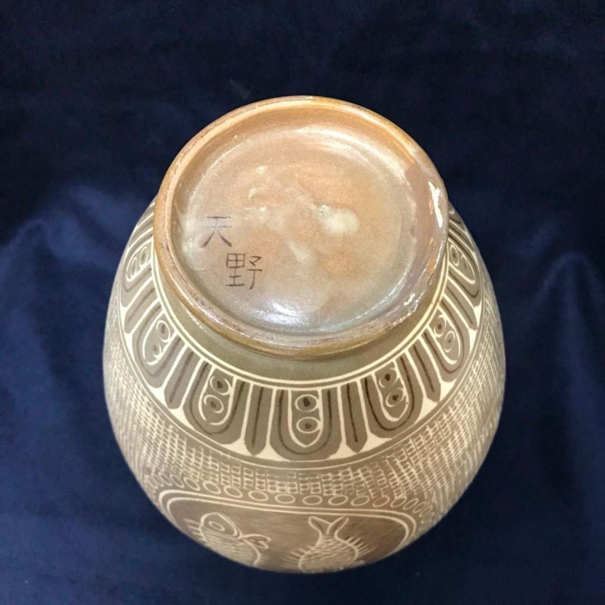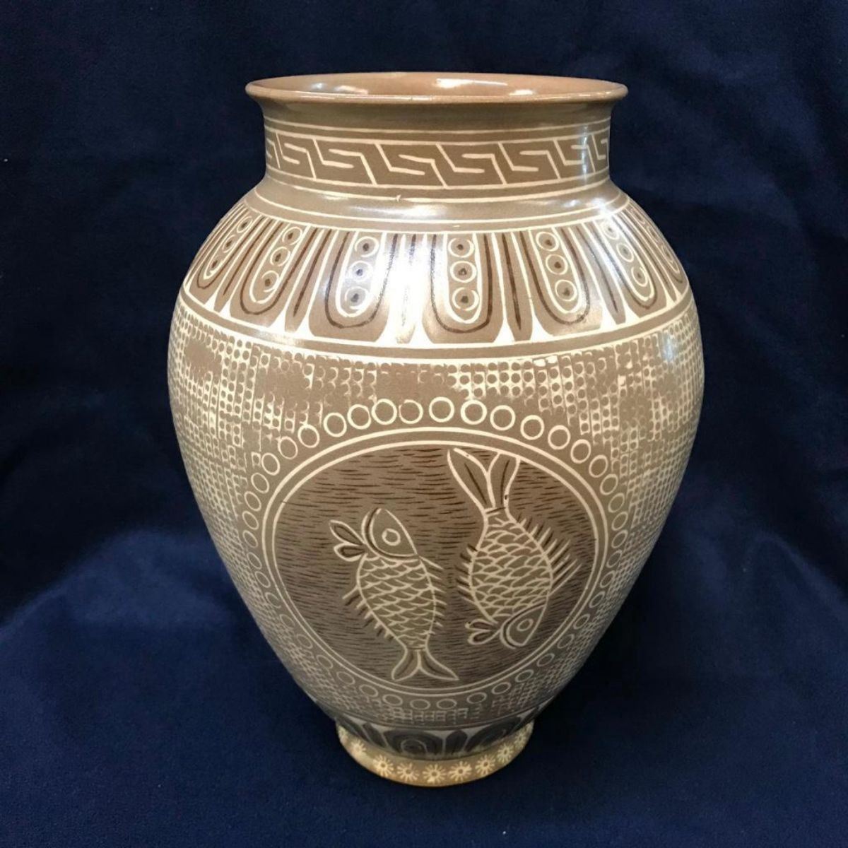 20th Century Japanese vase with double fish design. Signed on the bottom in characters. Provenance: Moreland Smith Estate, NC. 7 1/2" H X 3 1/4" D opening.Â