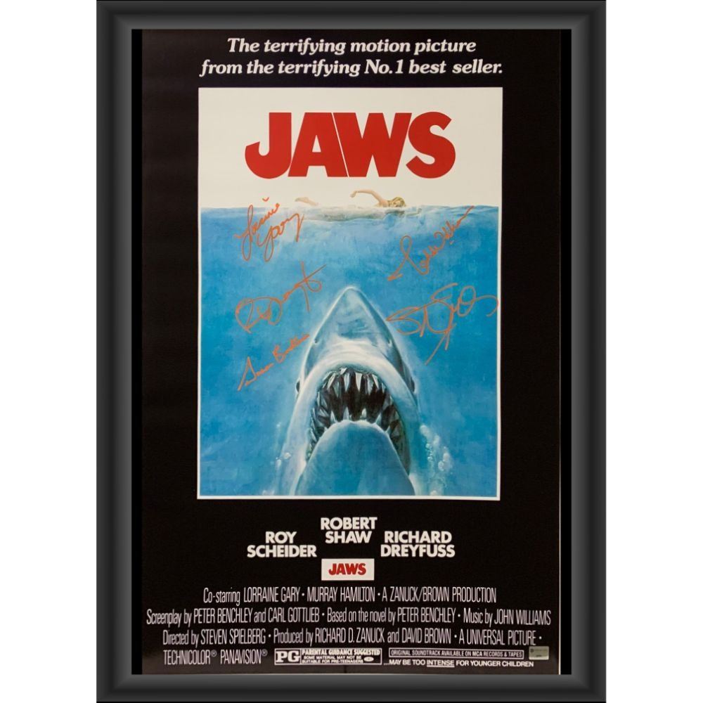 Signed by Richard Dreyfuss, Lorraine Gary, Susan Backlinie, composer John Williams and director Steven Spielberg