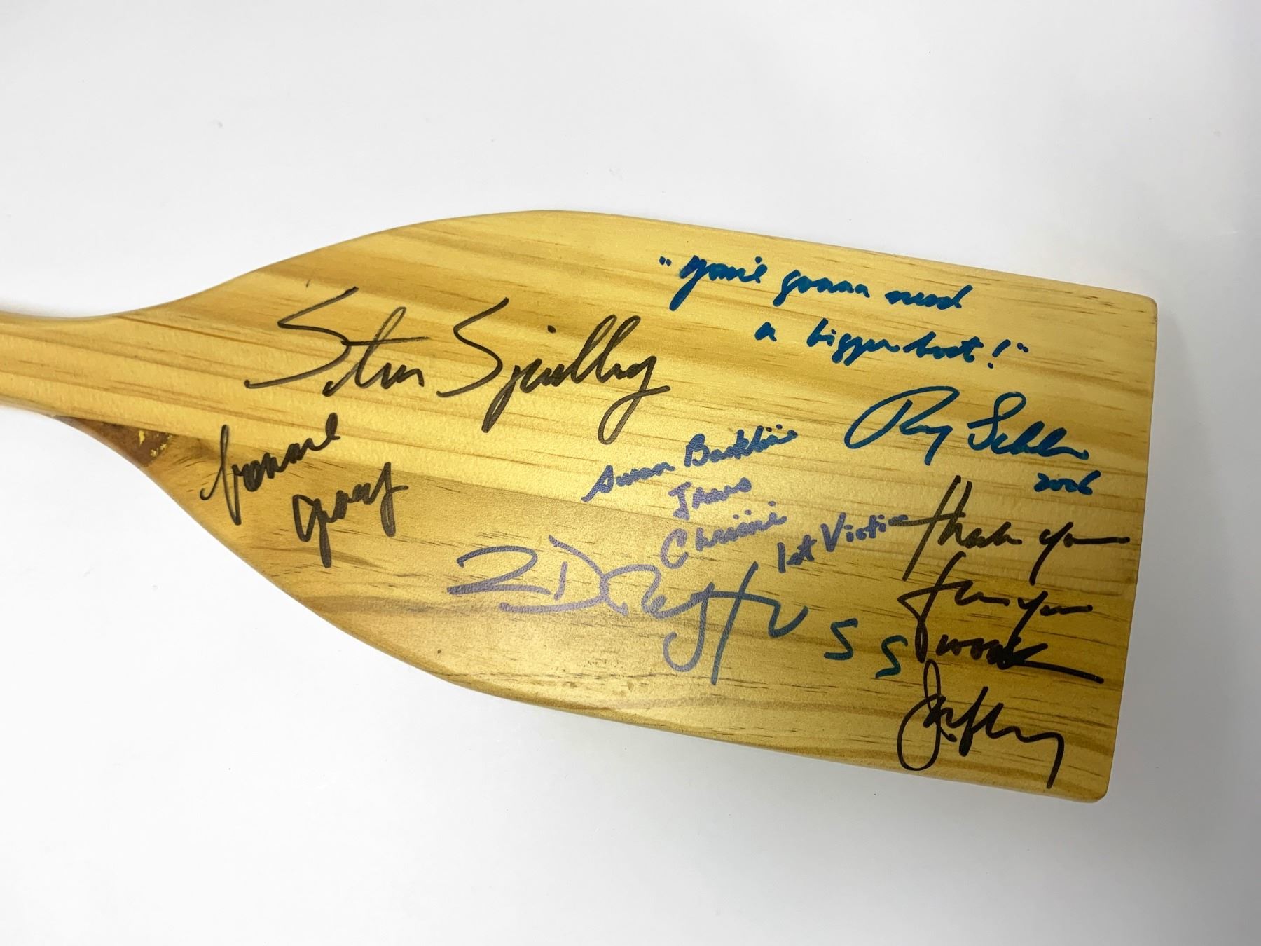 Autographed By: Roy Scheider, Richard Dreyfuss, Lorraine Gary, Susan Backlinie, Steven Spielberg, John Williams, Peter BenchleyCertified and Excellent Condition